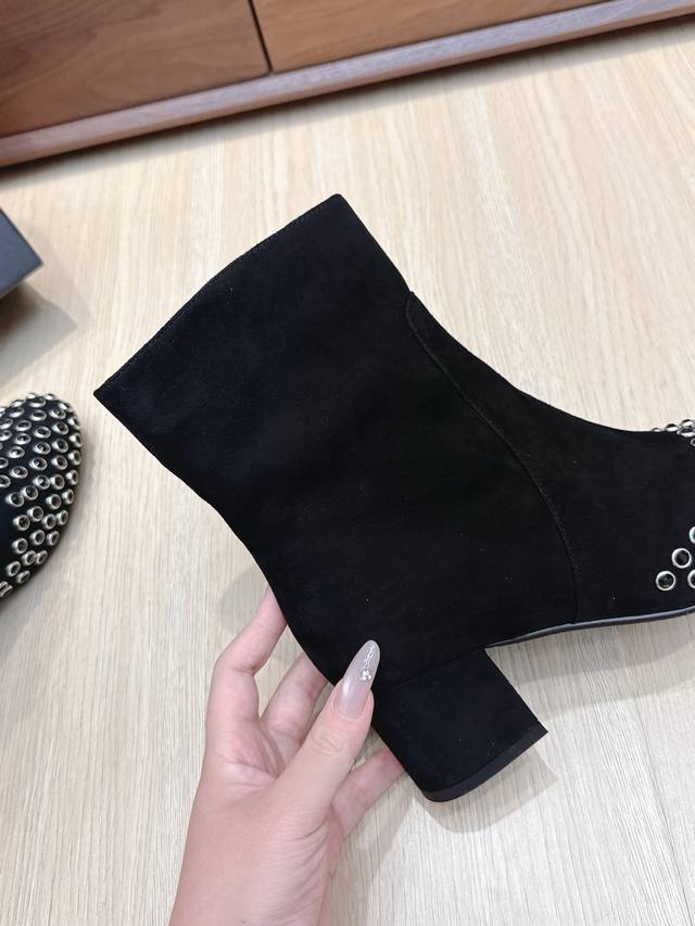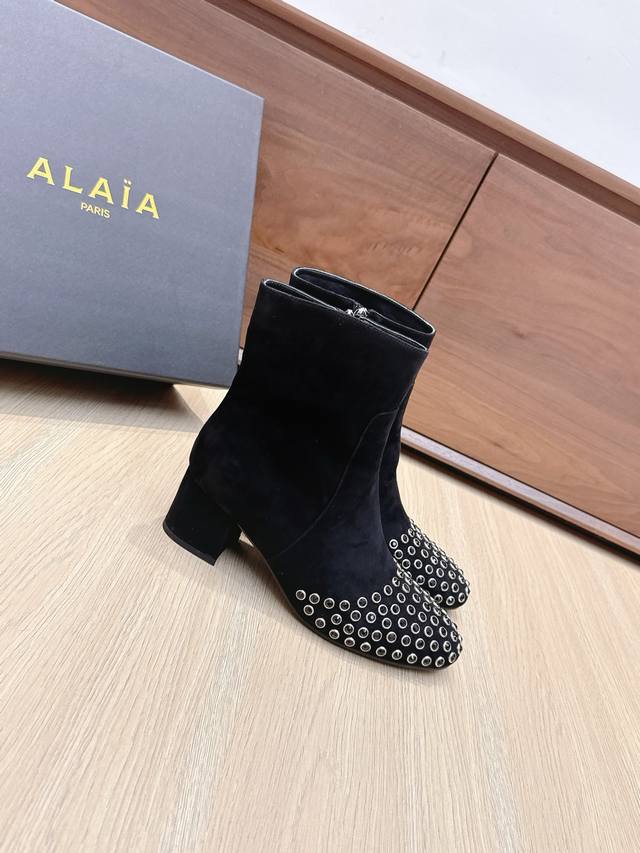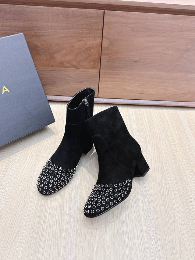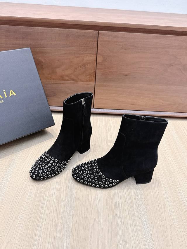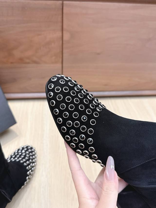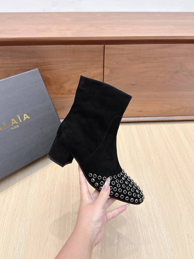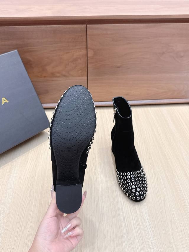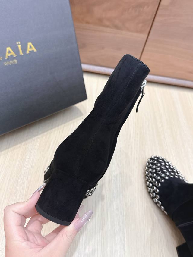 代购级 #阿莱亚水钻踝靴新品 25秋冬做个Blingbling的女孩纸啊 这也太闪耀啦,而且粗跟也很稳!麂皮 小牛皮材质,牛皮底 Size:35-39 40 41 42定制不退换
