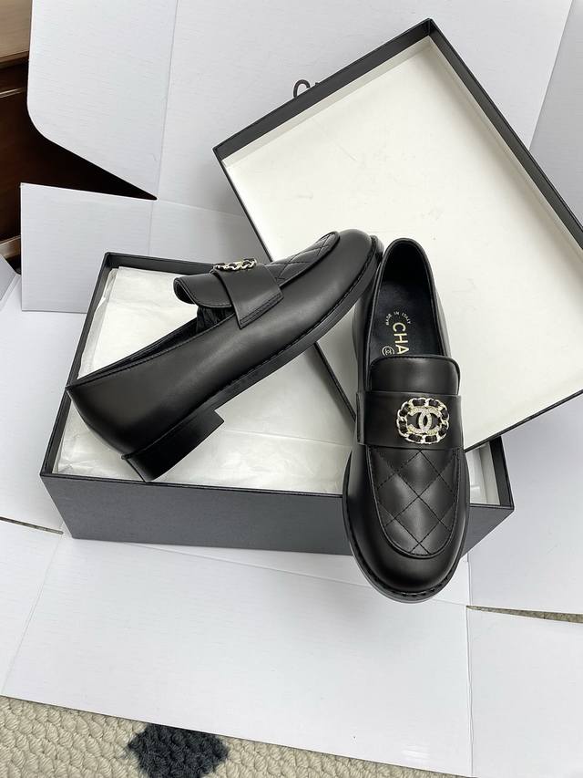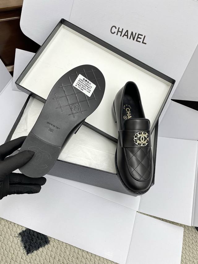 代购级 飞机盒10 Chanel 25Ss 小香 新款 小香乐福鞋 单鞋 女神系列,拥有香家特色优雅名媛气质,超级耐看,让人无法抗拒,心动Ing 鞋面:进口小牛皮 内里:混种羊皮 大底:意大利真皮大底 Size:#35-41 40 41 定做不退换