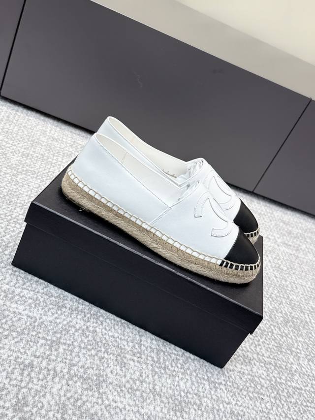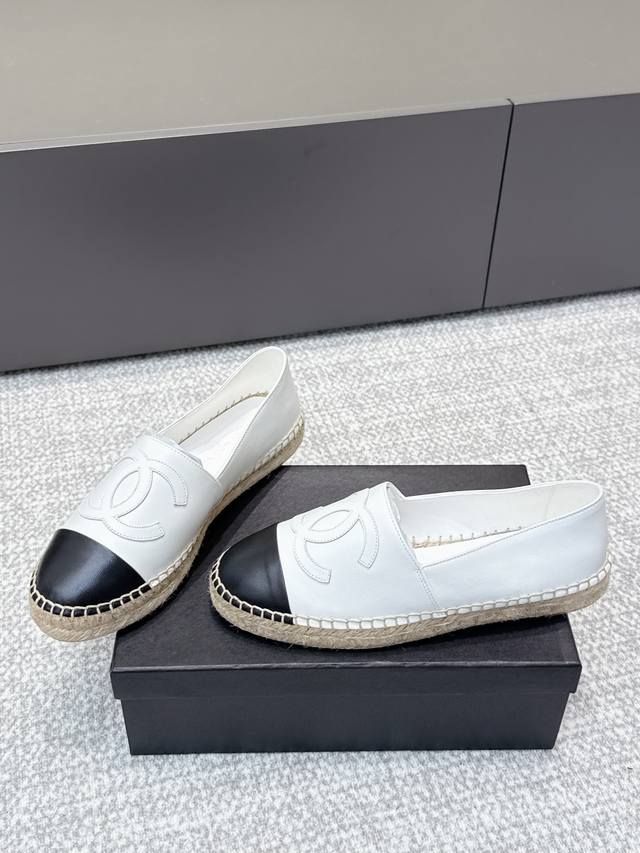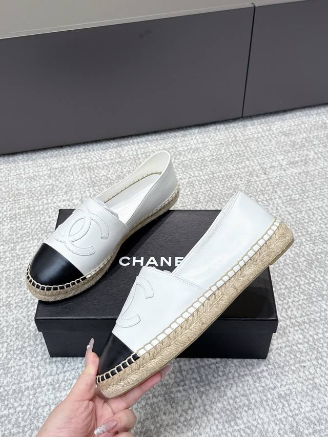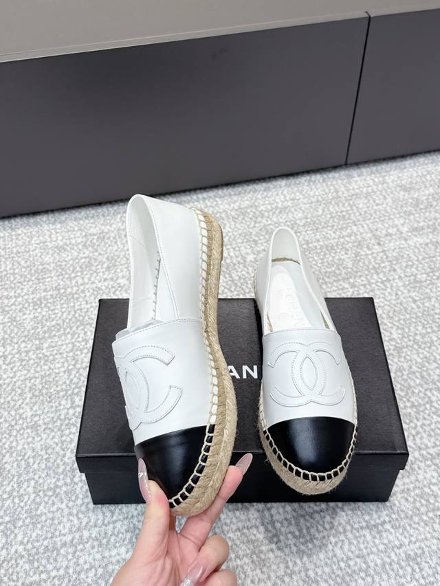 代购级 香奈儿经典渔夫鞋 史上最好穿的懒人鞋~每年都会出新颜色 ~年年穿不腻~年年永不会过时~通勤逛街都非常Ok 定制进口头层羊皮 布料麻棉面!柔软羊皮内里 麻