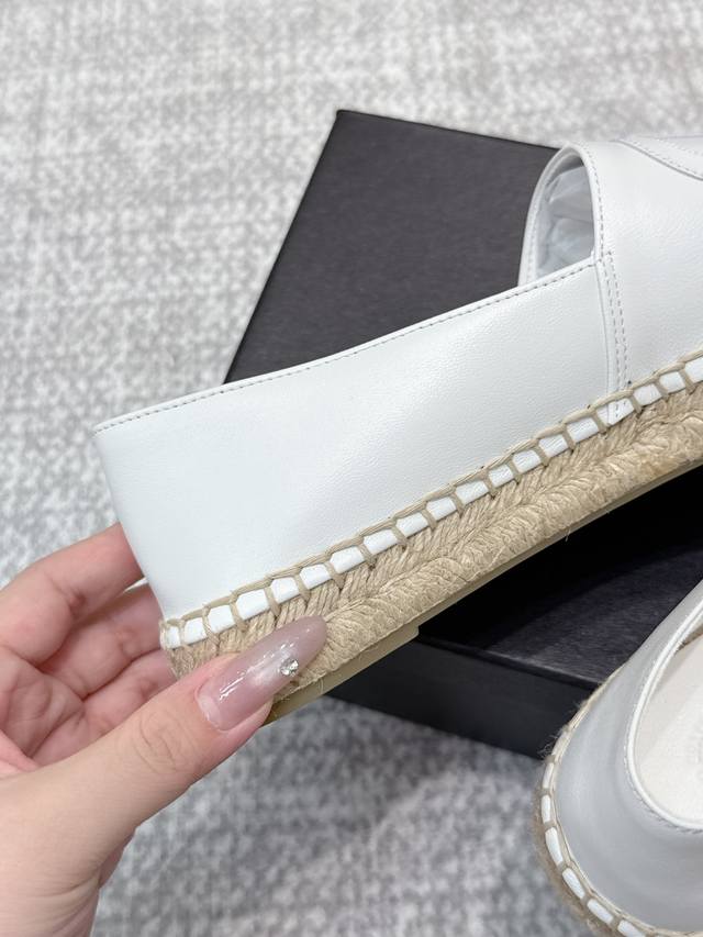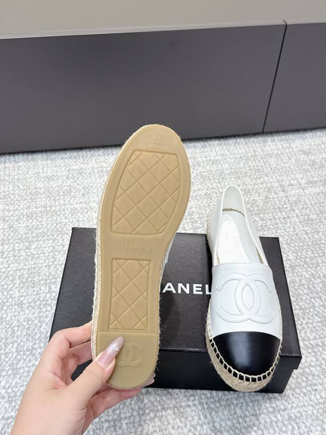 代购级 香奈儿经典渔夫鞋 史上最好穿的懒人鞋~每年都会出新颜色 ~年年穿不腻~年年永不会过时~通勤逛街都非常Ok 定制进口头层羊皮 布料麻棉面!柔软羊皮内里 麻绳加纯手工编花注胶半透明橡胶原色大底 Size:35-39 40定做不退换