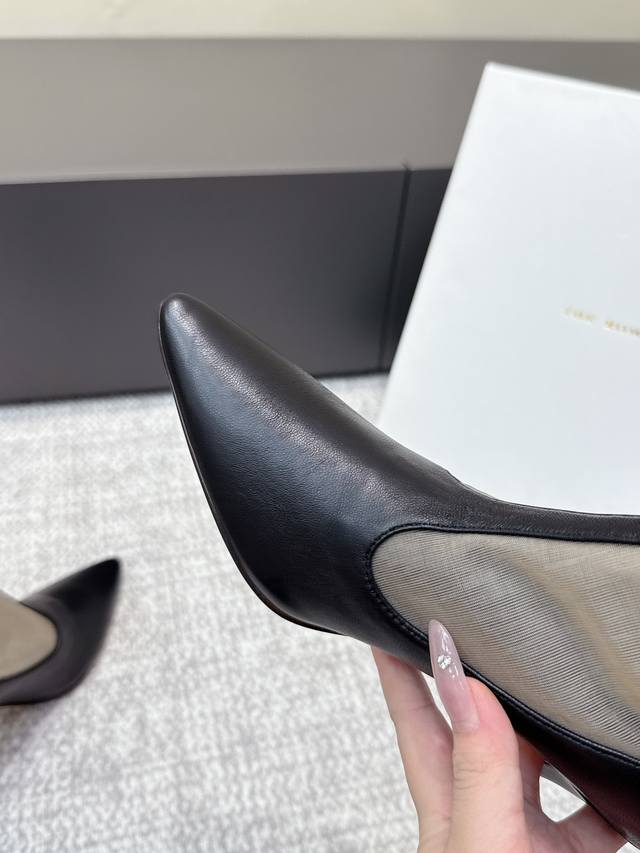 代购级 高品质小众潮牌The Row25春夏法式复古简易风 网纱猫跟凉靴 复古气质女王 整个鞋型简约大气,很干净利落又好搭配!日常穿搭、约会聚会等也能轻松驾驭! 穿上很显脚瘦,又在视觉上拉腿长!这质感,任谁看了都高呼Yyds由内到外散发着贵气感~光泽感拉满!而且舒适又耐穿!穿着轻便舒服,走路完全不累脚!日常通勤、逛街等统统都能Hold得住! 鞋面:采用牛皮拼网纱 内里垫脚:羊皮 意大利进口真皮大底 跟高:8.5Cm 码数: 35-39 40.41定做不退换
