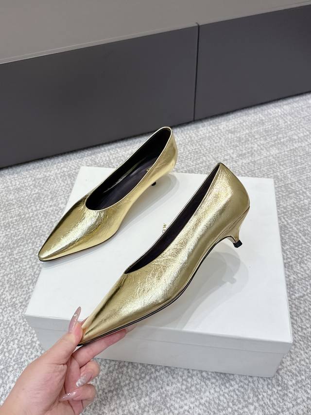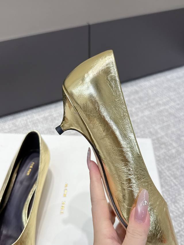 代购级 高品质小众潮牌The Row25Ss法式复古简易风 中空高跟单鞋 复古气质女王 整个鞋型简约大气,很干净利落又好搭配!日常穿搭、约会聚会等也能轻松驾驭! 穿上很显脚瘦,又在视觉上拉腿长!这质感,任谁看了都高呼Yyds由内到外散发着贵气感~光泽感拉满!而且舒适又耐穿!穿着轻便舒服,走路完全不累脚!日常通勤、逛街等统统都能Hold得住! 鞋面:采用开边珠 牛皮 内里垫脚:羊皮 意大利进口真皮大底 跟高:3.5Cm 码数: 35-40 40.41定做不退换