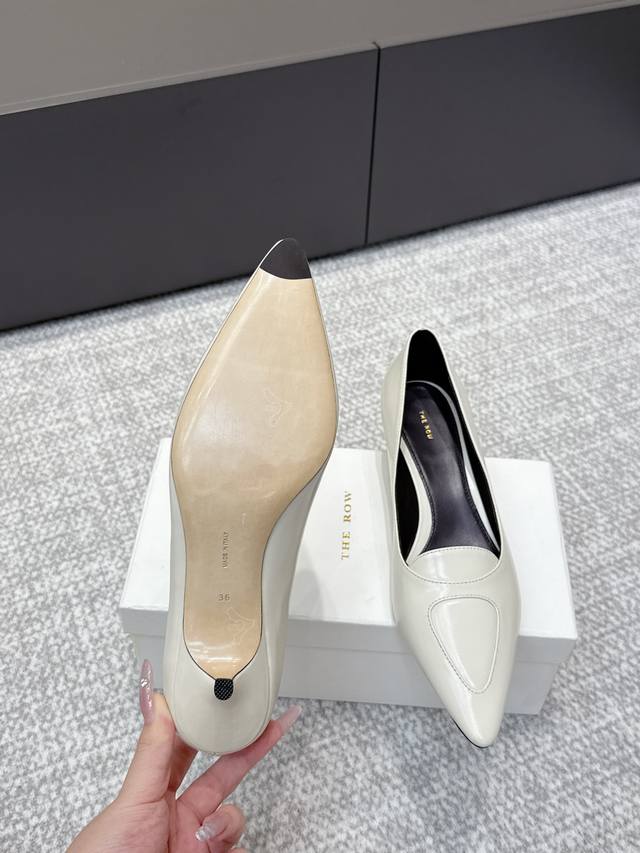 代购级 高品质小众潮牌The Row25Ss法式复古简易风 中空高跟单鞋 复古气质女王 整个鞋型简约大气,很干净利落又好搭配!日常穿搭、约会聚会等也能轻松驾驭! 穿上很显脚瘦,又在视觉上拉腿长!这质感,任谁看了都高呼Yyds由内到外散发着贵气感~光泽感拉满!而且舒适又耐穿!穿着轻便舒服,走路完全不累脚!日常通勤、逛街等统统都能Hold得住! 鞋面:采用开边珠 牛皮 内里垫脚:羊皮 意大利进口真皮大底 跟高:3.5Cm 码数: 35-40 40.41定做不退换