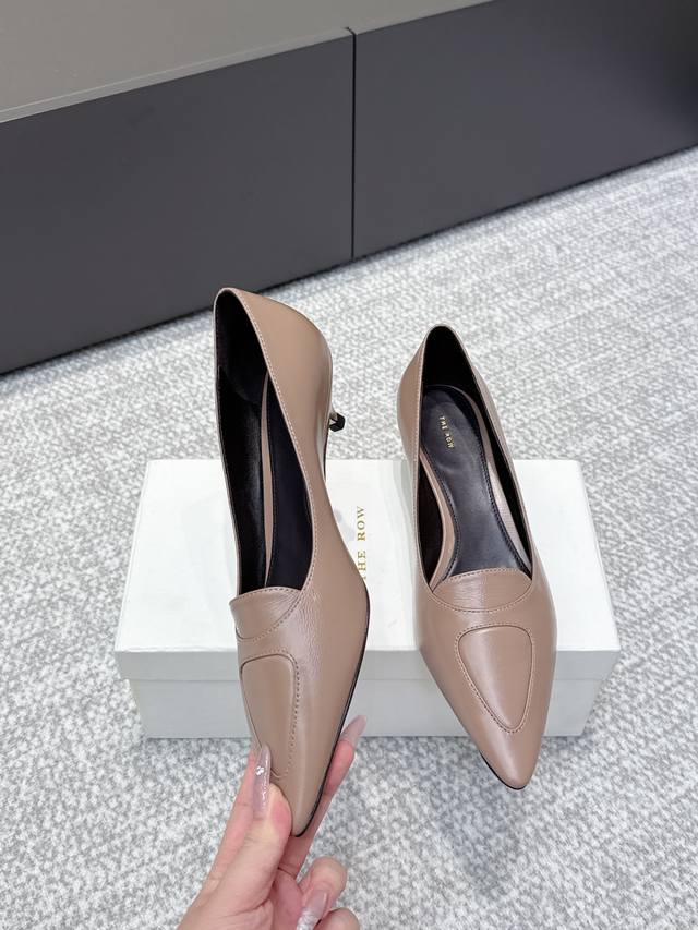 代购级 高品质小众潮牌The Row25Ss法式复古简易风 中空高跟单鞋 复古气质女王 整个鞋型简约大气,很干净利落又好搭配!日常穿搭、约会聚会等也能轻松驾驭! 穿上很显脚瘦,又在视觉上拉腿长!这质感,任谁看了都高呼Yyds由内到外散发着贵气感~光泽感拉满!而且舒适又耐穿!穿着轻便舒服,走路完全不累脚!日常通勤、逛街等统统都能Hold得住! 鞋面:采用开边珠 牛皮 内里垫脚:羊皮 意大利进口真皮大底 跟高:3.5Cm 码数: 35-40 40.41定做不退换