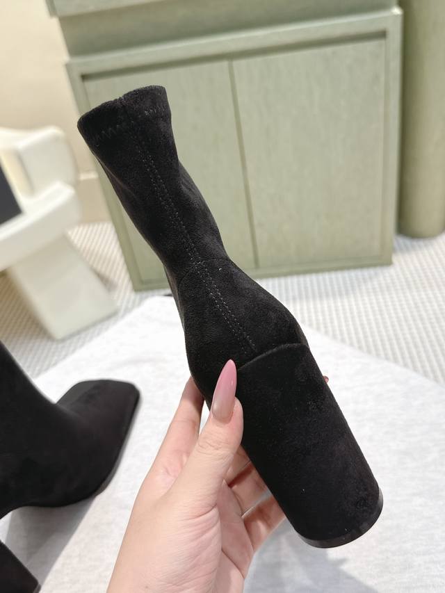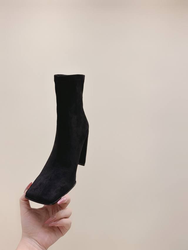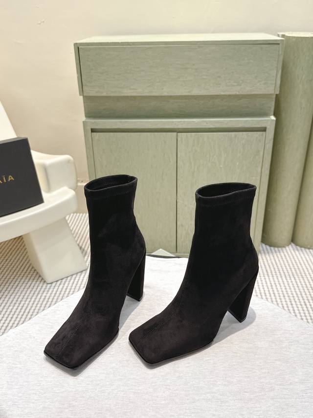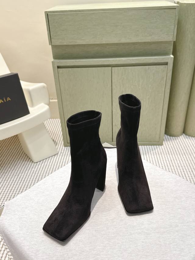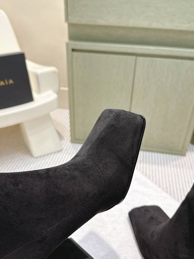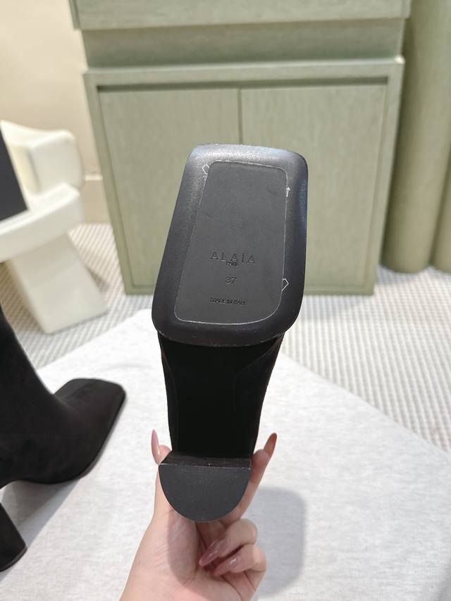 / 代购级 Alaia阿莱亚 极简风时髦精侧拉链粗跟方头短靴高跟及踝靴 时尚达人都在寻觅一双能兼顾舒适与风格的短靴 而这双无疑是这个季节的最佳答案! 搭配简约的直筒