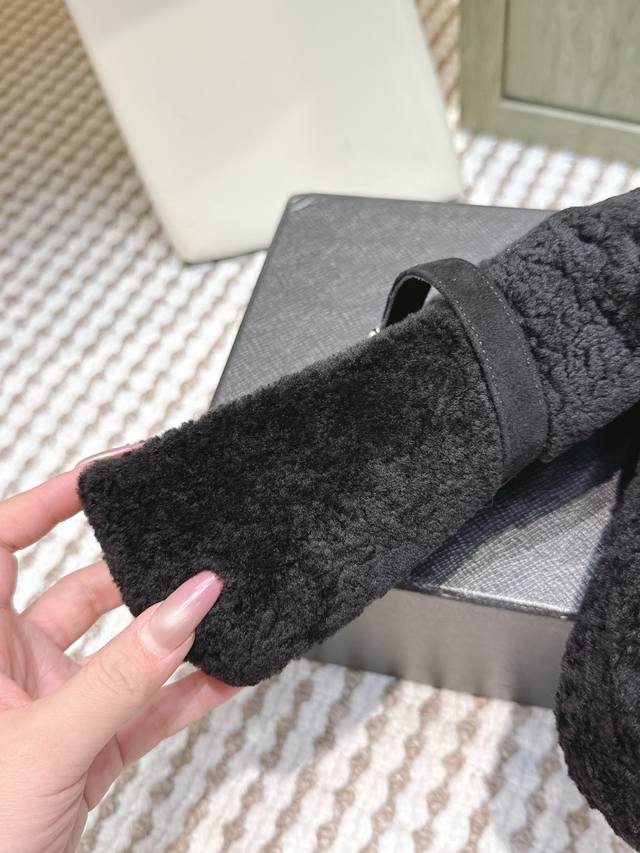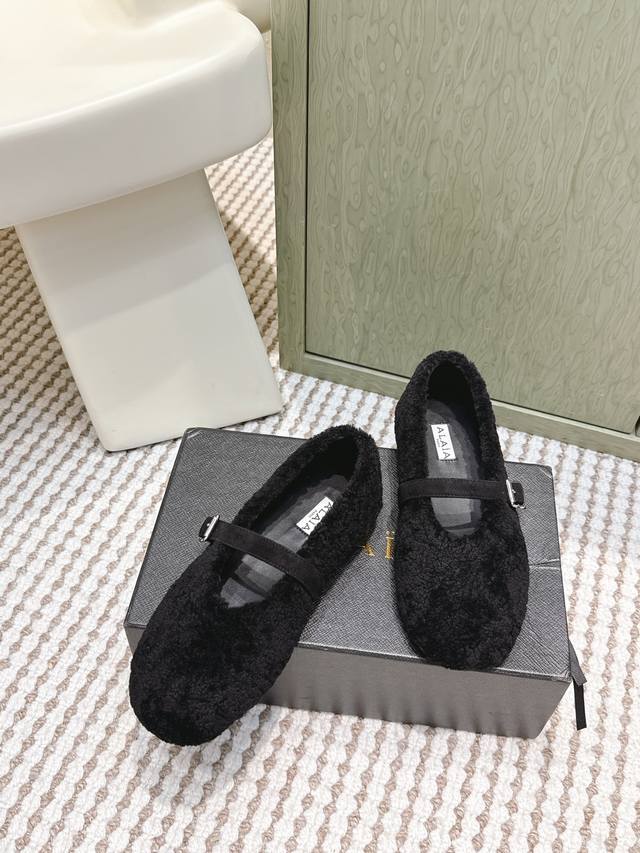 / 代购级 Alaia 秋冬新款羊毛玛丽珍鞋芭蕾鞋 采用反绒面料搭配羊羔毛内里,保暖性强;一字扣带设计,金属扣具提升质感,兼具复古与精致感。圆头版型包容脚型,平底设