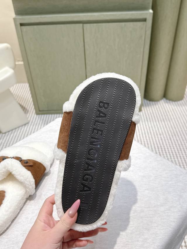 代购级 Balenciaga巴黎世家25Fw毛拖鞋棉鞋请认准高版本 这款靴子在设计上独具匠心 以绑带与皮带元素作为亮点 不仅能将靴子稳固贴合于足部 更可随心调节松紧 在细节处理上 品牌标志性的做旧五金件贯穿始终 巧妙营造出复古磨损效果,彰显个性态度搭配厚实的齿状橡胶鞋底 既保证了穿着的舒适度,又强化了整体的时尚感与辦识度无疑是本季不容错过的时尚单品,它将为时尚爱好者们的穿搭增添别样魅力,引领新一轮的潮流风尚 靴筒高度 鞋面:磨砂皮 内里:羊毛 跟高:平底 大底:原版开模 Size:35-40 40 定做不
