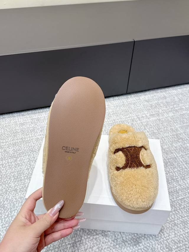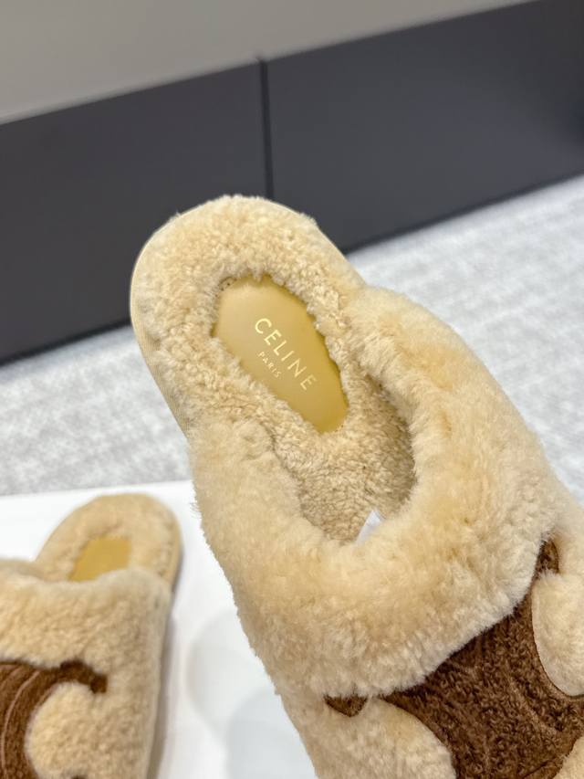 代购级 Celine 塞琳 25Ss 秋冬新品 一脚蹬羊毛拖鞋 这一季的赛琳又让我重新爱了它一次! 这季节美鞋太多这款毛拖 真的是让我无法自拔真太可爱了~ 毛茸