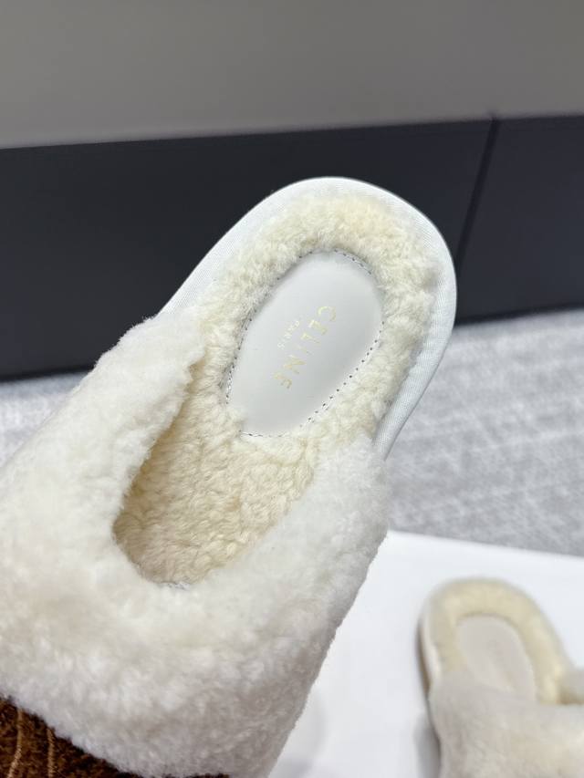 代购级 Celine 塞琳 25Ss 秋冬新品 一脚蹬羊毛拖鞋 这一季的赛琳又让我重新爱了它一次! 这季节美鞋太多这款毛拖 真的是让我无法自拔真太可爱了~ 毛茸