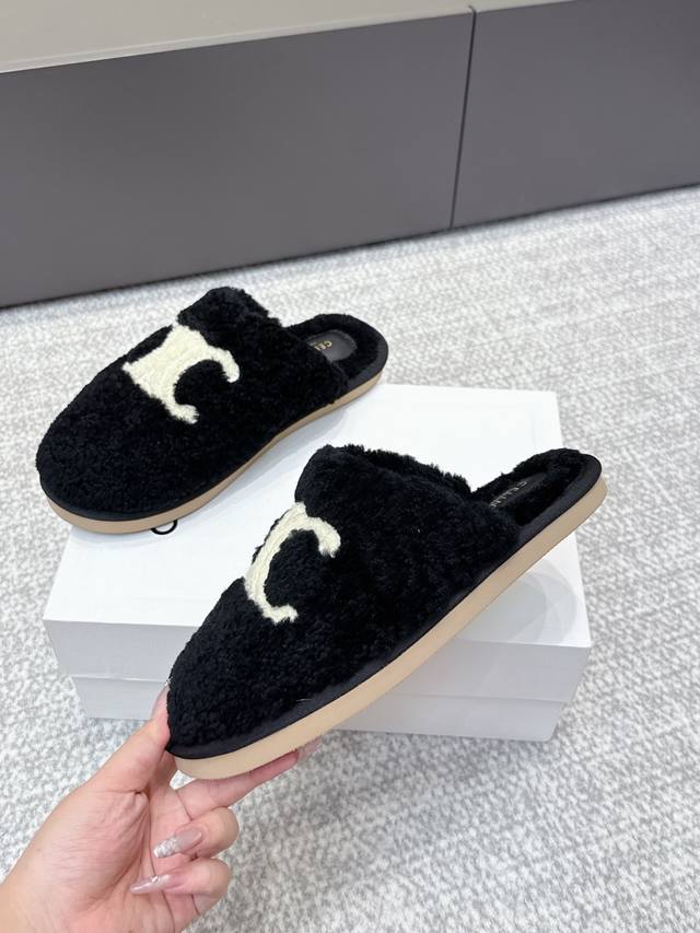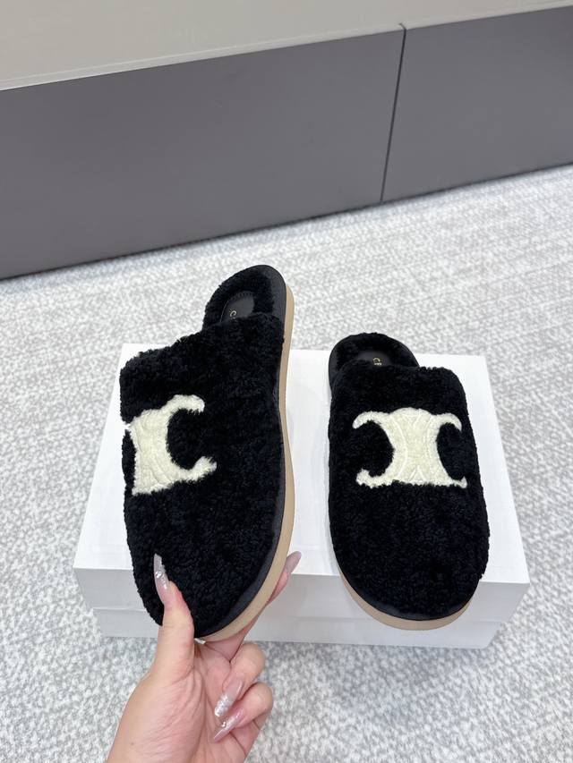 代购级 Celine 塞琳 25Ss 秋冬新品 一脚蹬羊毛拖鞋 这一季的赛琳又让我重新爱了它一次! 这季节美鞋太多这款毛拖 真的是让我无法自拔真太可爱了~ 毛茸