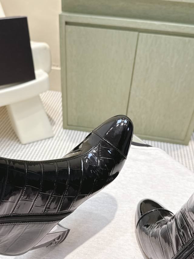 普拉达最新短靴系列 面:进口小牛皮、牛漆皮、开边珠牛皮 里:进口混种羊皮 底:意大利原版1:1大底 码数:35 41