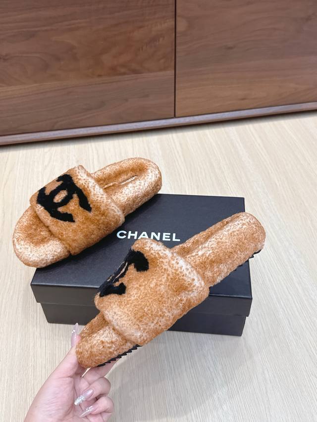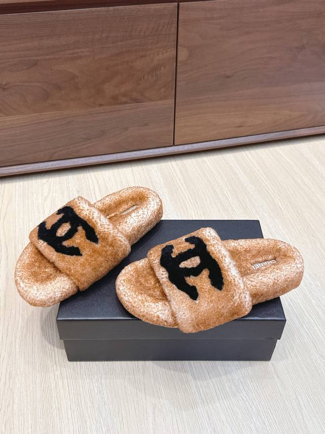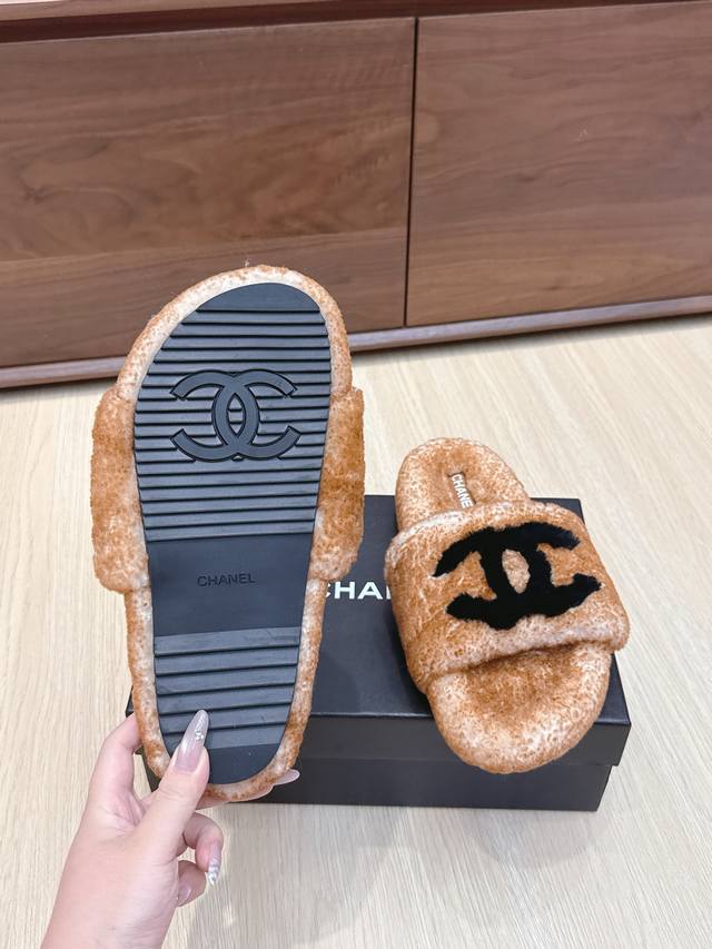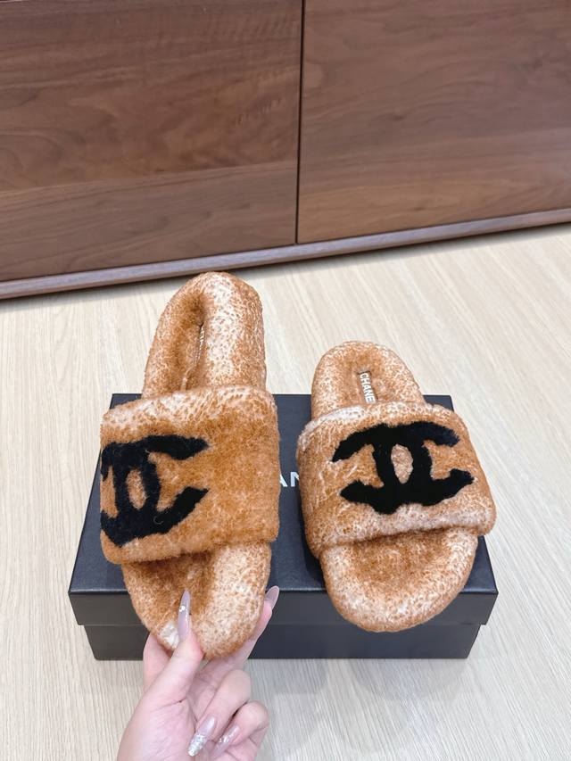 / 代购级 Chanel 经典四季双C毛毛拖鞋!这款毛拖真的是真太可爱了~ 柔软蓬松的毛毛,舒服暖脚 秋冬搭配袜子休闲又慵懒 上脚真的好看又时髦 进口羊毛,手感细腻