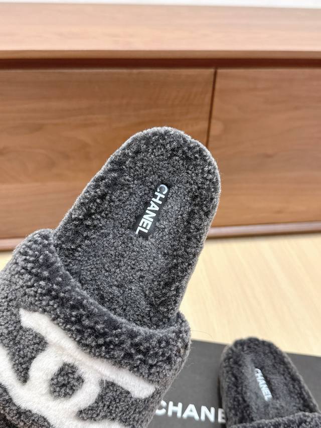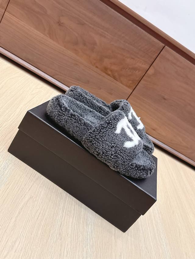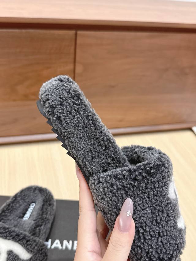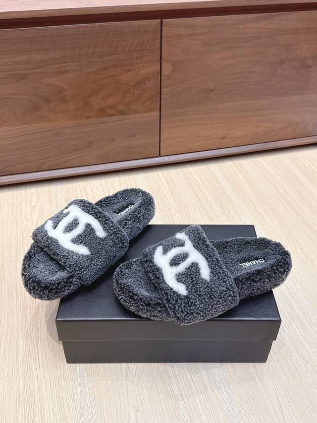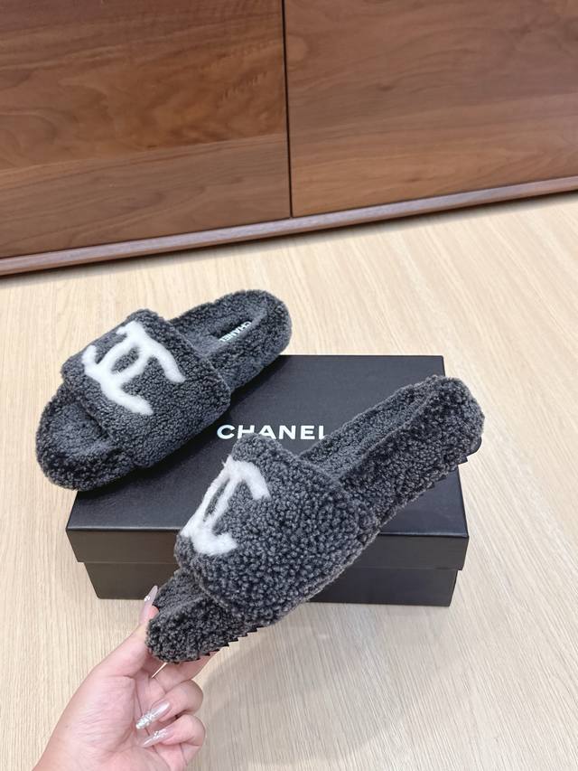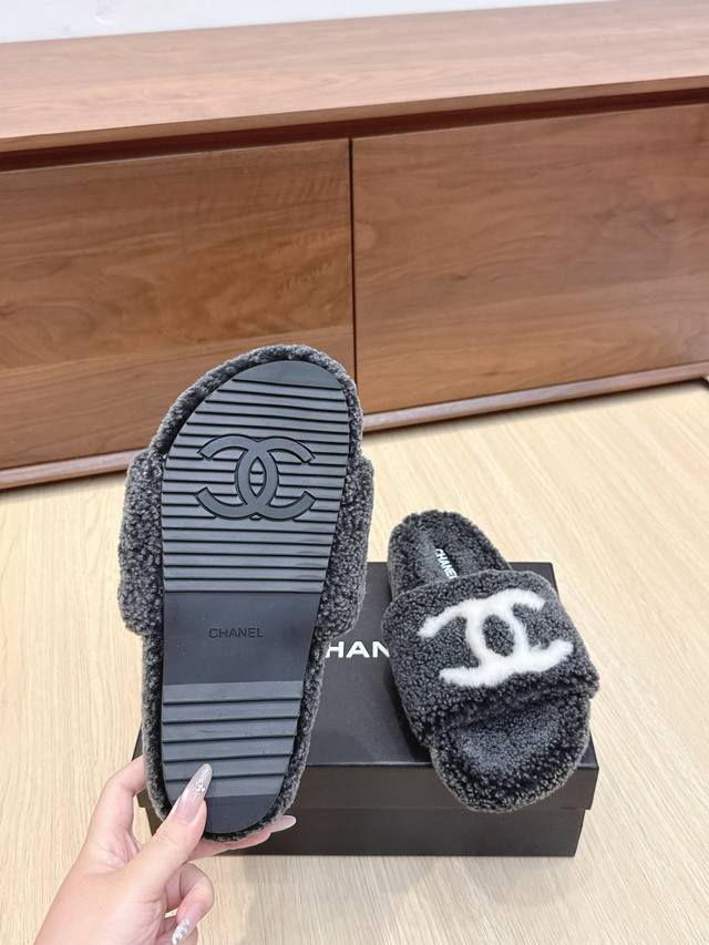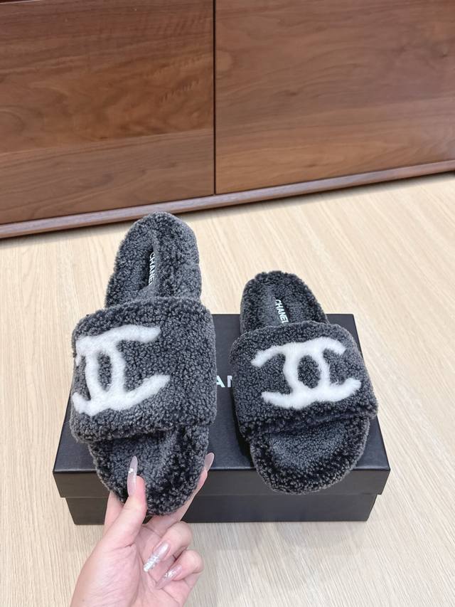 / 代购级 Chanel 经典四季双C毛毛拖鞋!这款毛拖真的是真太可爱了~ 柔软蓬松的毛毛,舒服暖脚 秋冬搭配袜子休闲又慵懒 上脚真的好看又时髦 进口羊毛,手感细腻