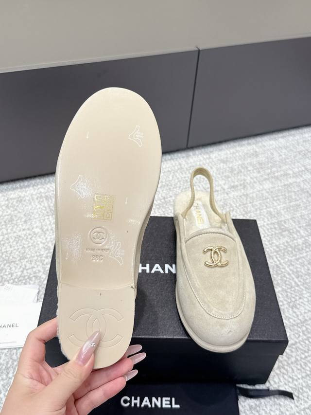 代购级 Chanel 香奈儿秋冬新款包头鞋 第一眼看上就被种草了根据天气变化自由穿搭!套上袜套春夏秒变可爱单鞋!秒变魔法公主适合一切脚型,显瘦百搭~经典版型搭配组合营造出了很强烈的高级感 上脚非常精致 俏皮 鞋面:胎牛绒 内里:羊皮 大底:真皮大底 Size:35-41 40 41定制