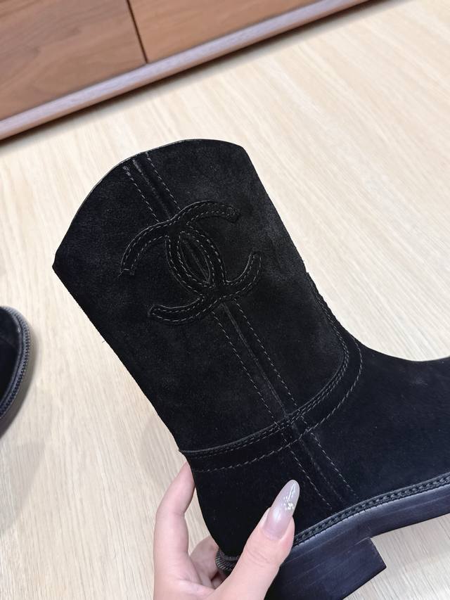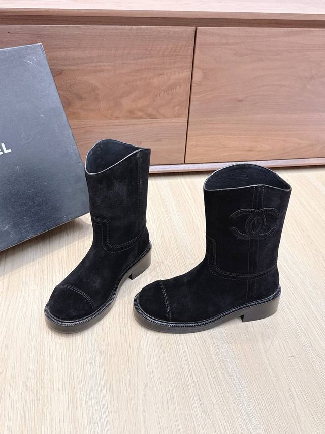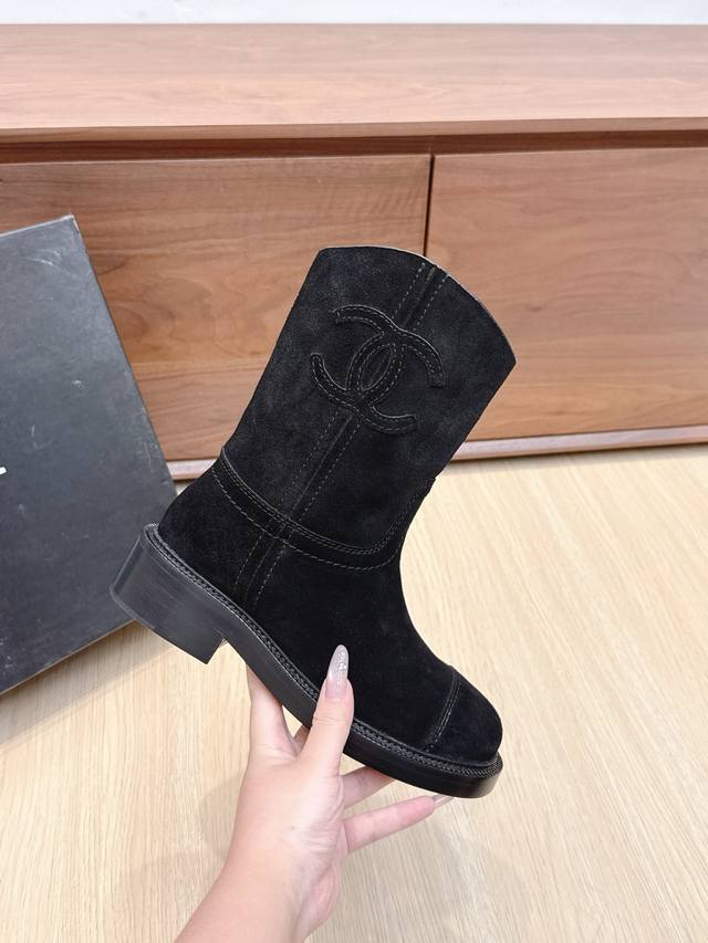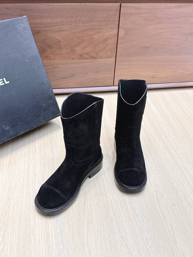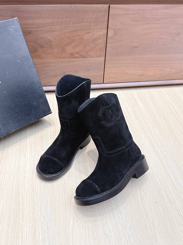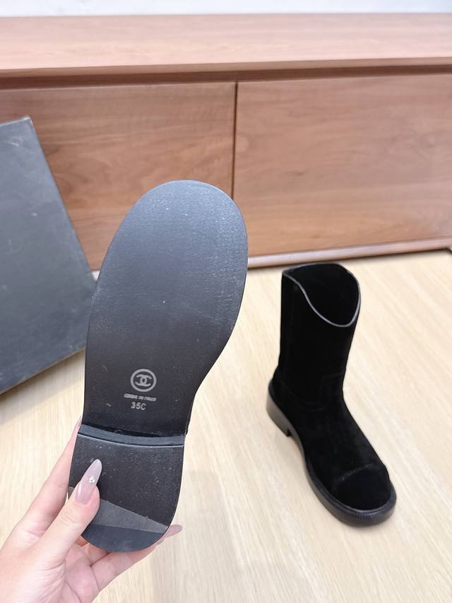 代购级 Chanel 香奈儿*秋冬新款 这款骑士靴真的是帅气时尚的代表,靴筒口双C电绣Logo 低调不失奢华! 简约时尚个性又大气!自然流畅的美感,有种惊艳了时光的美感,冬日也要展现大长腿~ 鞋面:小牛皮 高丝光牛反绒 内里:牛皮内里 跟高:4Cm 码数:35-40 40.41定制不退换 鞋底:意大利加厚双层真皮大底