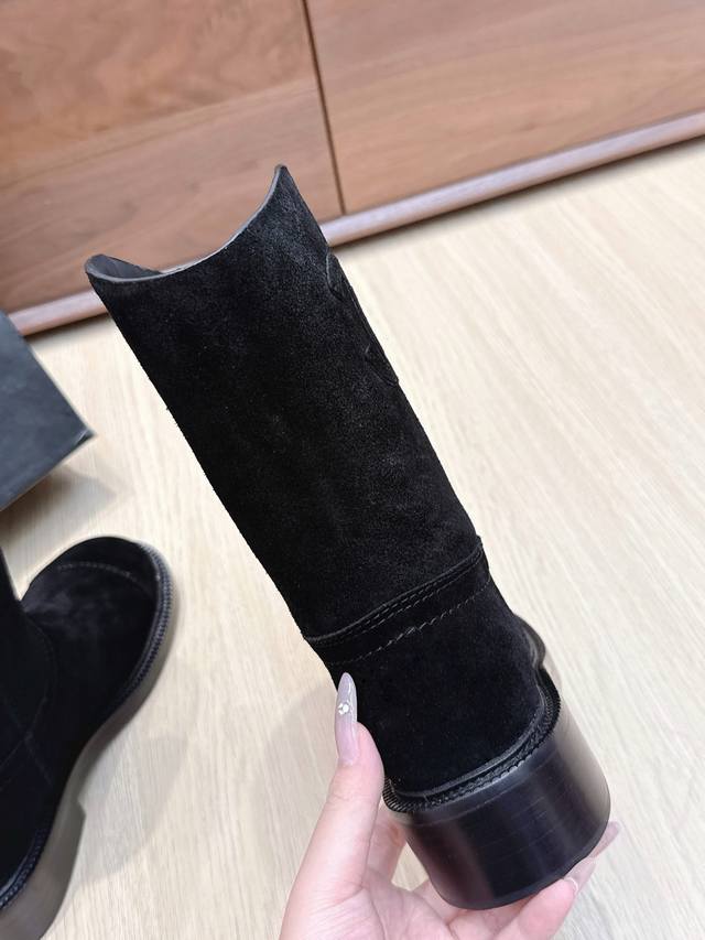 代购级 Khaite2025秋冬新款方头猫跟靴时尚高筒靴 小方头加小猫跟,很有腔调的 靴口有点斜切设计,新颖不单调!...