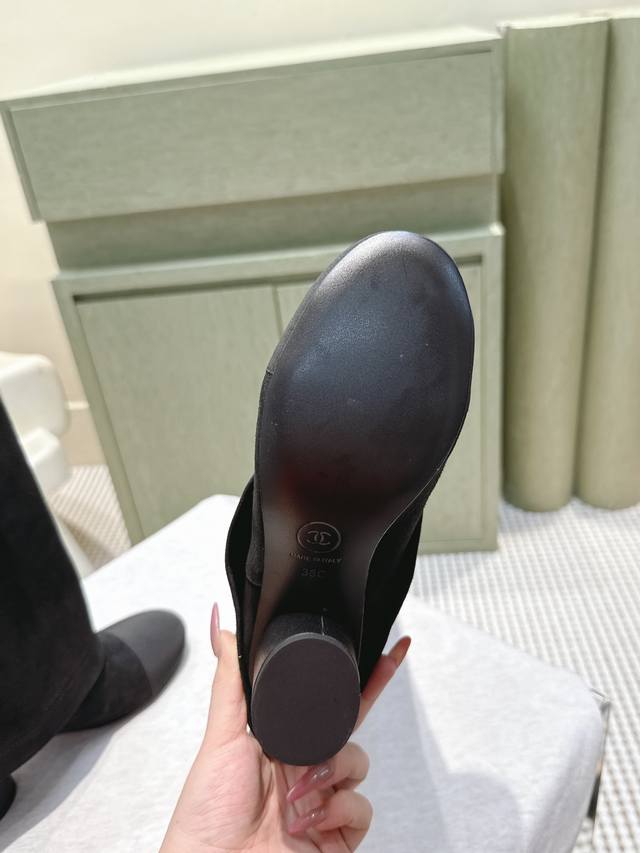 代购级 Chanel 25B New Arrival~小香25秋冬高靴新品 直筒显腿长的亮点,一眼小香! 看似有点夸张,但搭配高高宽宽的靴筒,实则协调大气的呢! 小牛皮的质感贼好,软软糯糯,脚感超赞的! 鞋面:小牛皮 内里:牛皮 跟高:4.5Cm 大底:原版真皮底 Size:35-39 40.41定做不退换