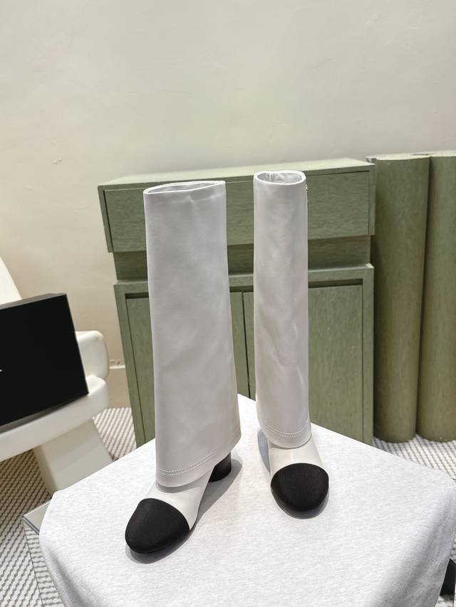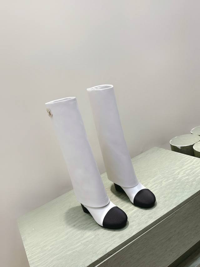 代购级 Chanel 25B New Arrival~小香25秋冬高靴新品 直筒显腿长的亮点,一眼小香! 看似有点夸张,但搭配高高宽宽的靴筒,实则协调大气的呢! 小牛皮的质感贼好,软软糯糯,脚感超赞的! 鞋面:小牛皮 内里:牛皮 跟高:4.5Cm 大底:原版真皮底 Size:35-39 40.41定做不退换
