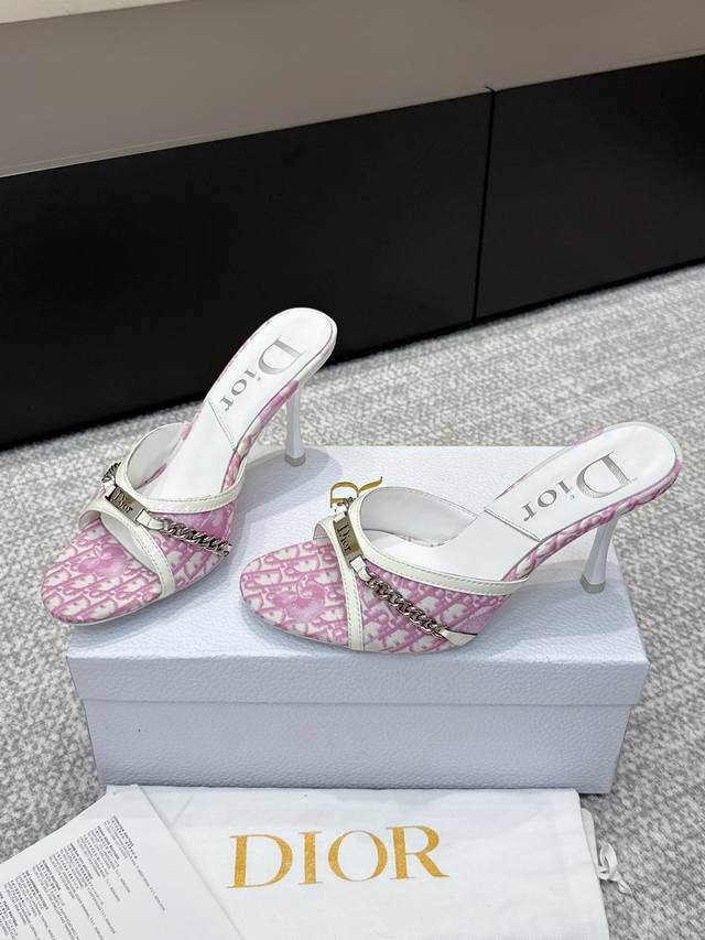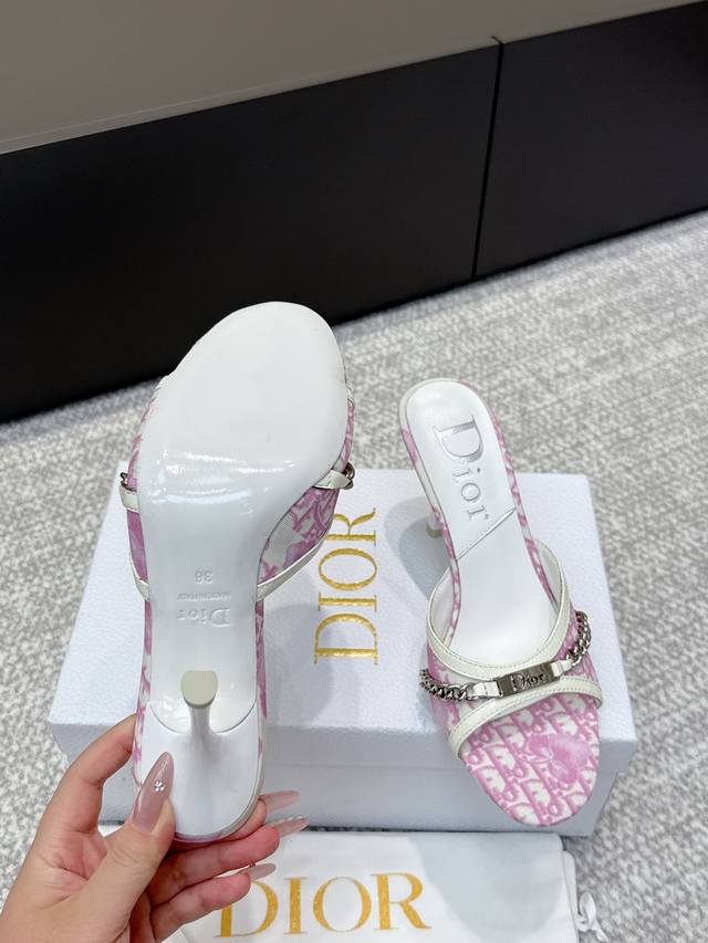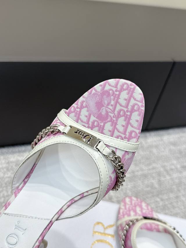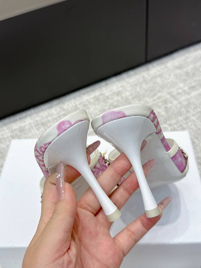 代购级 Dio*25S新款 老花刺绣Logo高跟鞋 上脚的脚感简直绝了!超级无敌舒适!垫脚分层凸起设计,更符合人体工学!走路更舒适!鞋面采用魔术贴刺绣工艺,精美