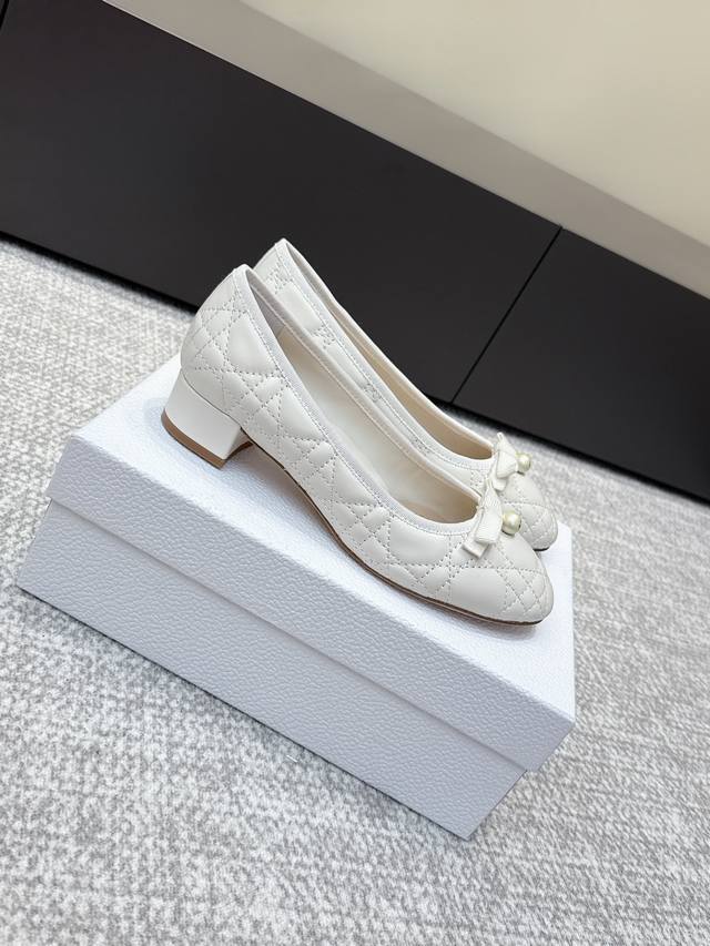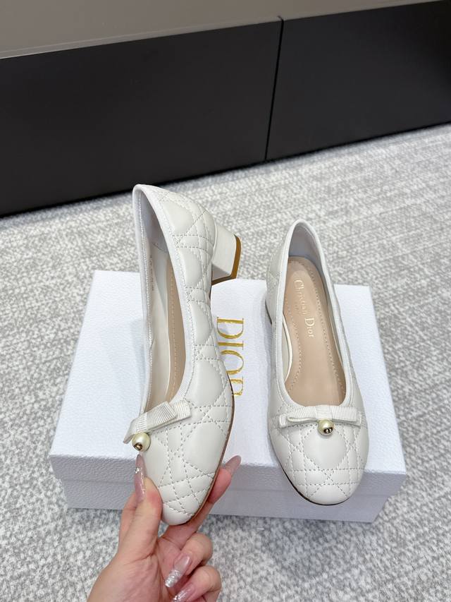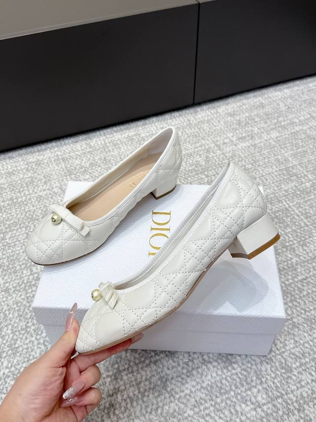 代购级 Dior迪奥 2025Ss新季圆跟玛丽珍圆头珍珠单鞋 新款Spectadior 芭蕾高跟鞋于发布秀精彩亮相 重新诠释经典的玛丽珍鞋 彰显高雅时尚的风格 单色调牛漆皮革鞋面饰予装修性孔眼细节 搭配珍珠 “Cd”扣子 精彩亮相 优雅的方形鞋头和5Cm厘米圆柱形鞋跟更显精致 可与该系列的绑腿搭配 彰显优雅女人的魅力