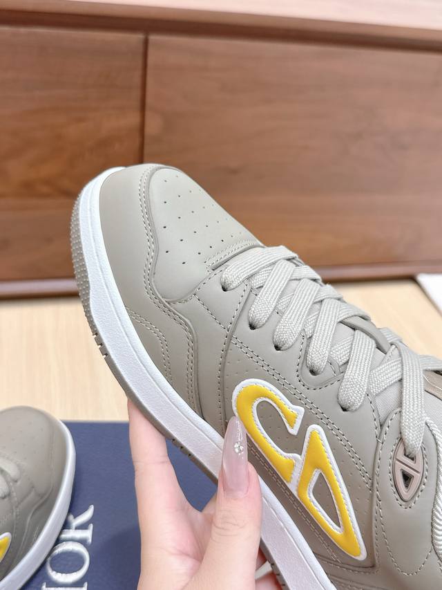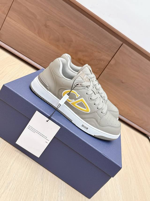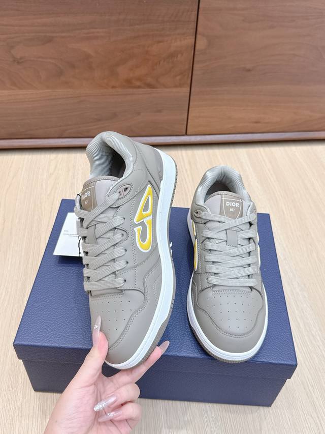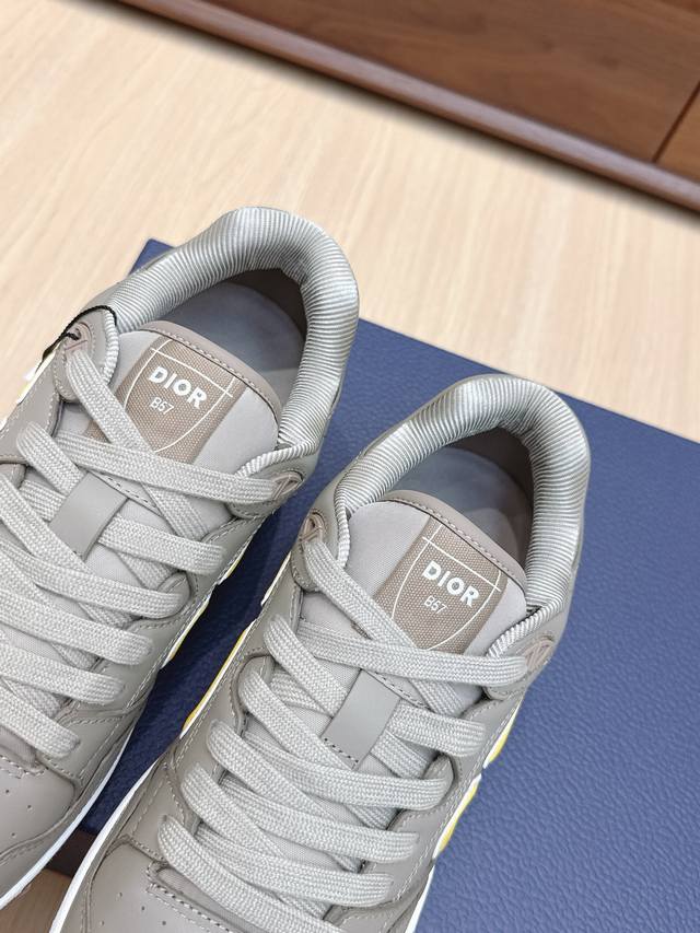 代购级 Dior迪奥 25 最新 B57系列 男款休闲运动鞋 Cd 滑板鞋 原版购入开发 做货 这款 B57 低帮运动鞋是二零二五春季男装系列新品,重新诠释篮球鞋设计,成为 Dior 的经典单品。采用灰色和白色光滑牛皮革精心制作,侧面饰以米色和黑色 Oblique 印花标志。鞋舌、鞋底和后侧饰以各种特色细节提升格调,而孔眼细节、缉面线和橡胶镶片更是突显其运动风格的动感魅力。带有双色橡胶鞋底,可搭配各式服饰,打造精致造型。 配送专柜精美包装 面料:原版定制小牛皮+ Oblique老花布 内里:原版定制透气内