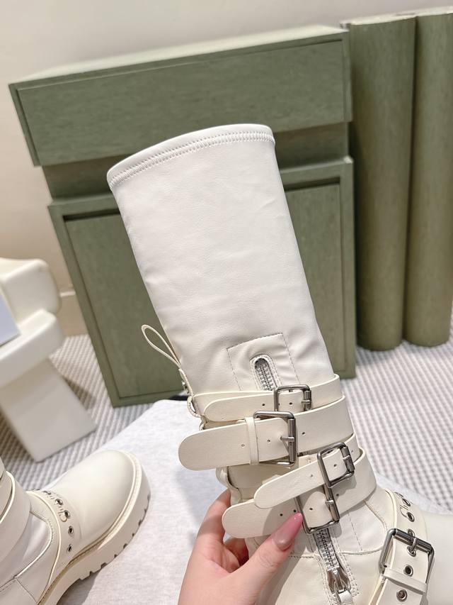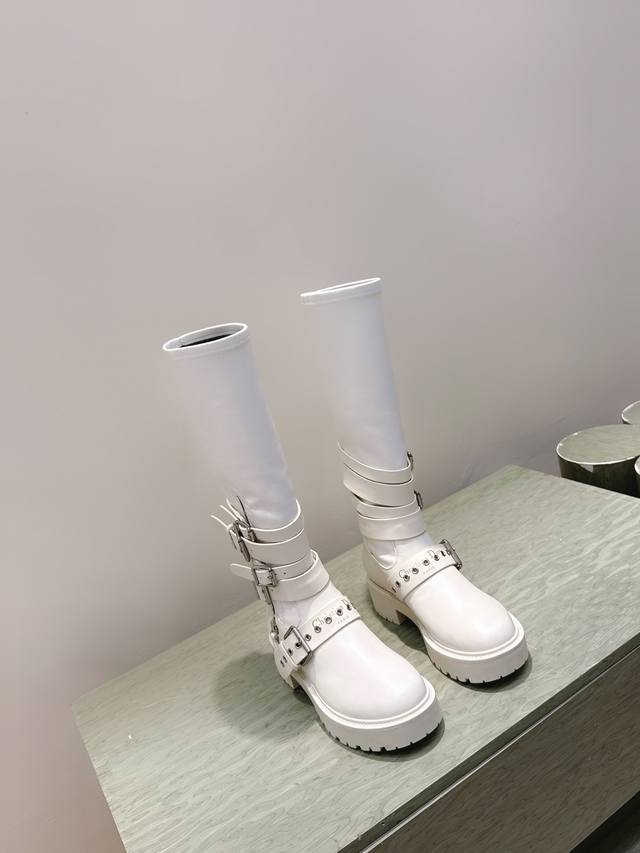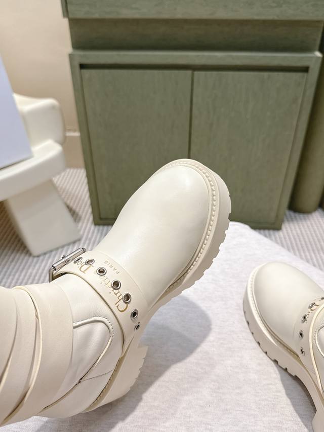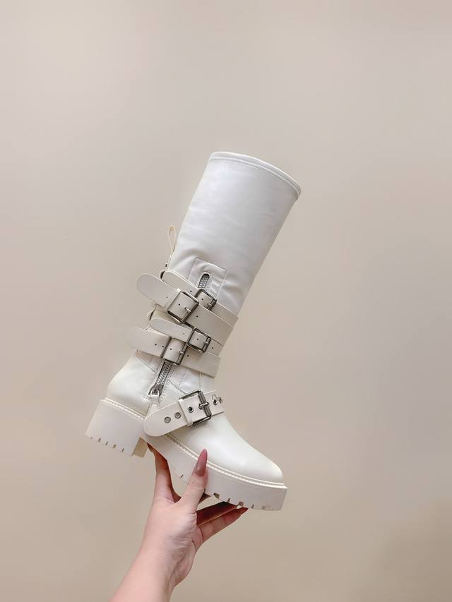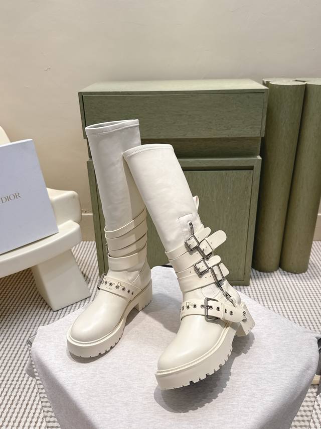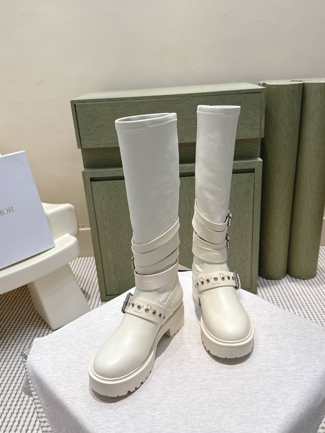 / 代购级 Dior迪奥2025S新款中靴高筒靴布洛克长靴 25秋冬成衣系列新品,彰显高订魅力。黑色橡胶效果牛皮革筒形设计,侧面饰以银色拉链饰面提升格调。搭配厚实而
