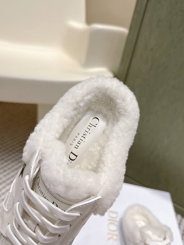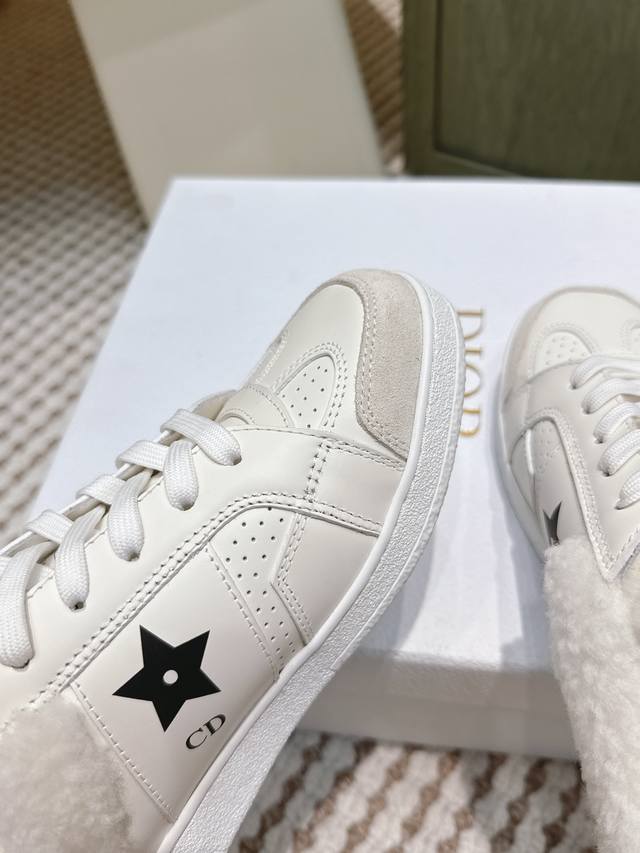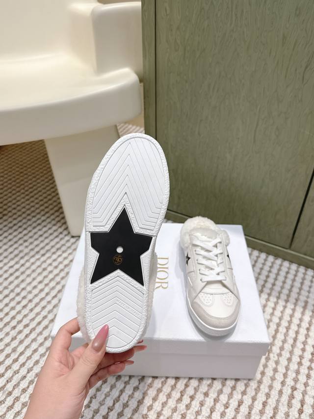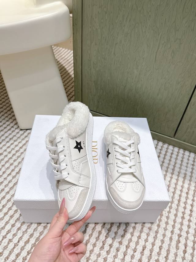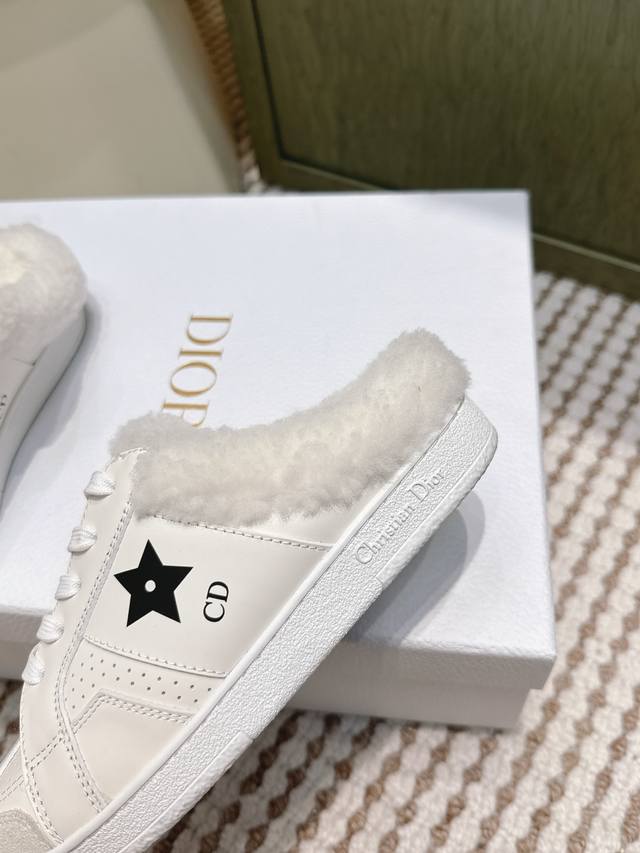 代购级 Dior 迪奥 Star 运动毛毛鞋半托鞋 这款 Dior Star 运动鞋延续经久不衰的轮廓,是新款经典单品。采用白色牛皮革精心制作,饰以同色调绒面牛