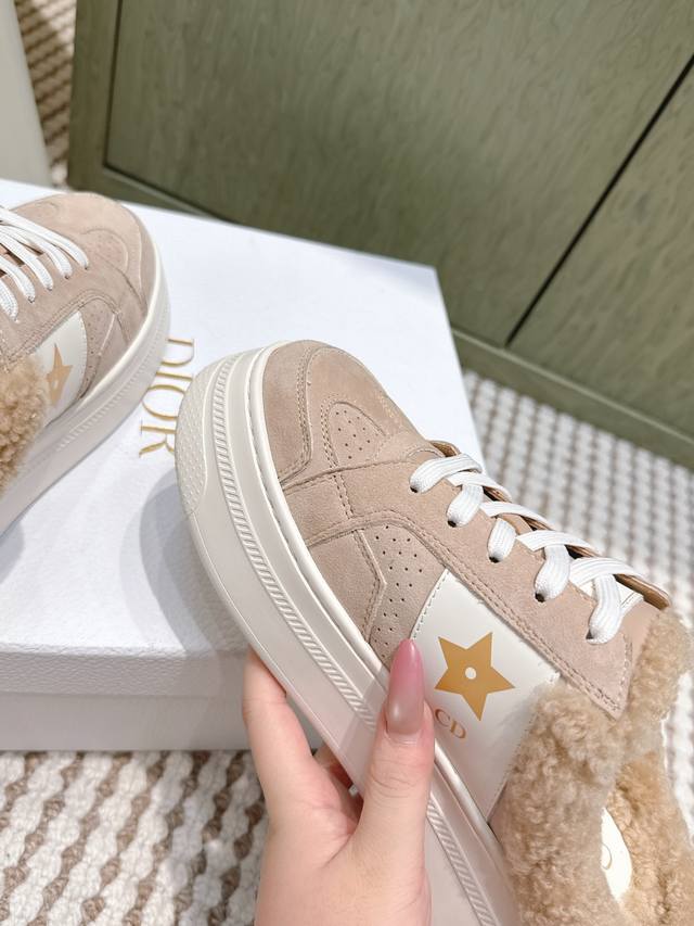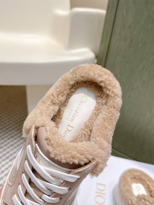 代购级 Dior 迪奥 Star 运动毛毛鞋半托鞋 这款 Dior Star 运动鞋延续经久不衰的轮廓,是新款经典单品。采用白色牛皮革精心制作,饰以同色调绒面牛
