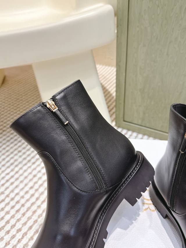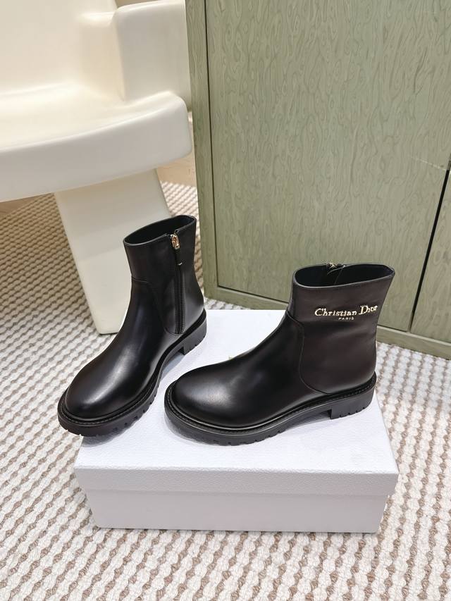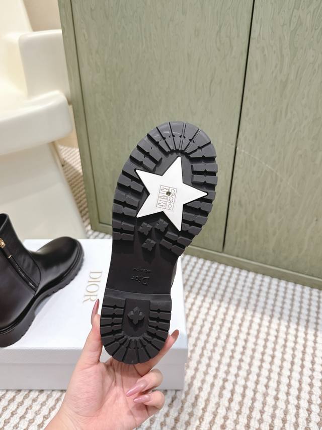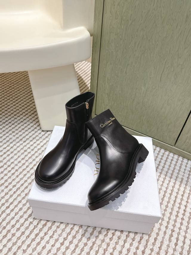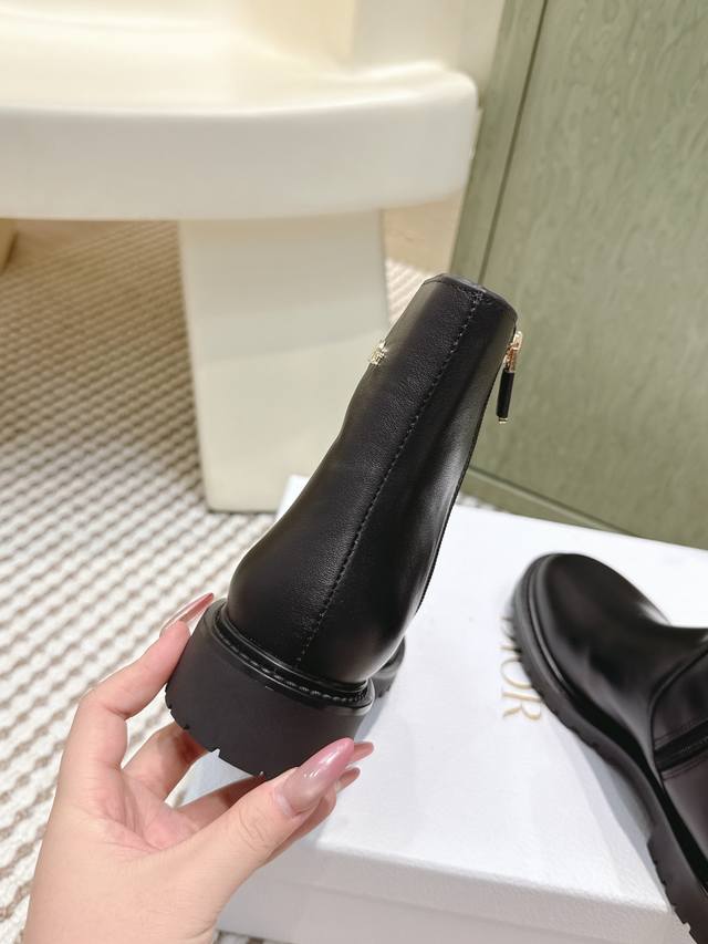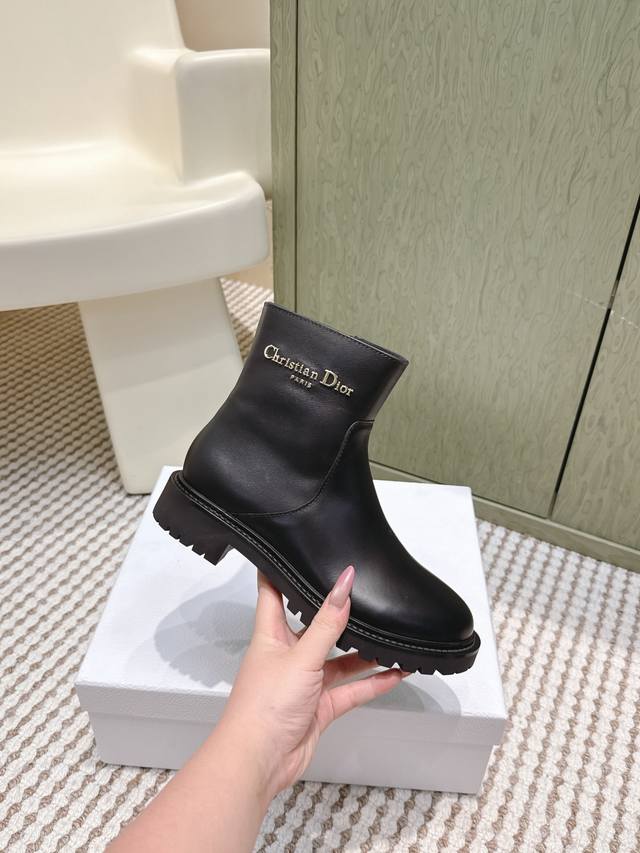 代购级 Dior 迪奥Alps D-Quest 及踝靴 这款 D-Quest 及踝靴是 Dioralps 限定系列的新品,融入 Dior 的高订风格经典标识,重新诠释经典的机车靴。采用黑色粒面牛皮革精心制作,搭配白色羊皮革皮毛一体效果内部提升格调,舒适非凡。装饰性饰带点缀以金色饰面金属 Christian Dior Paris 标志。厚实而轻盈的凹口鞋底更显休闲优雅。 主体:牛皮革 里料:羊皮革皮毛一体效果 装饰性饰带点缀以金色饰面金属 Christian Dior Paris 标志 凹口橡胶鞋底饰以 C