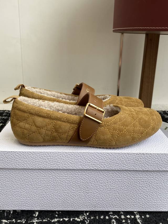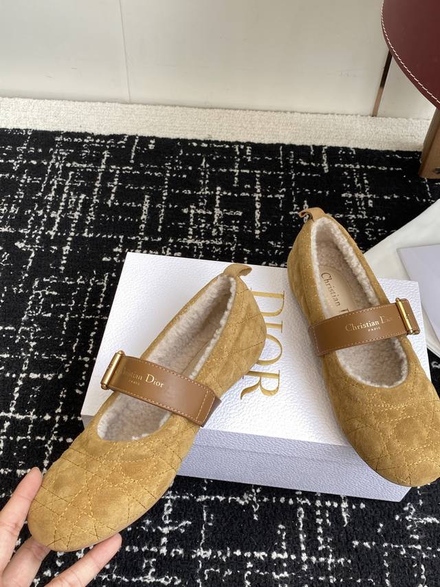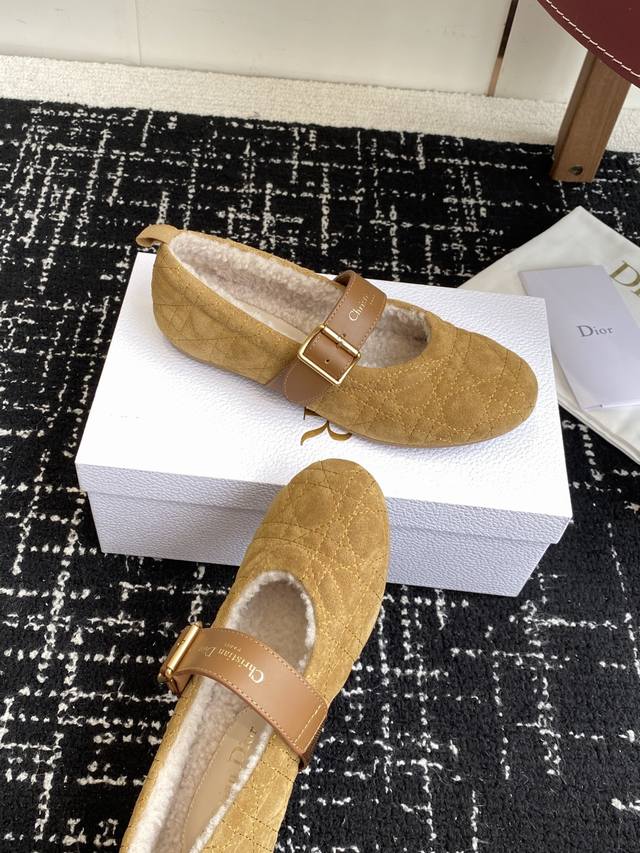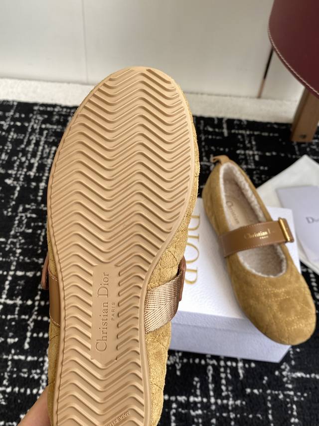 代购级 Dior 25Ss 秋冬新品 羊毛玛丽珍 芭蕾舞鞋 新品Dior格纹芭蕾舞 好乖啊~ 芭蕾鞋经典的迪奥藤格纹元素 罗纹蝴蝶结上加了Cd细节的珍珠设计精致