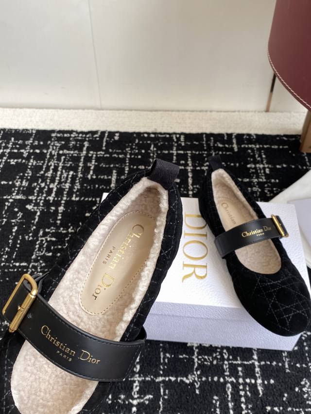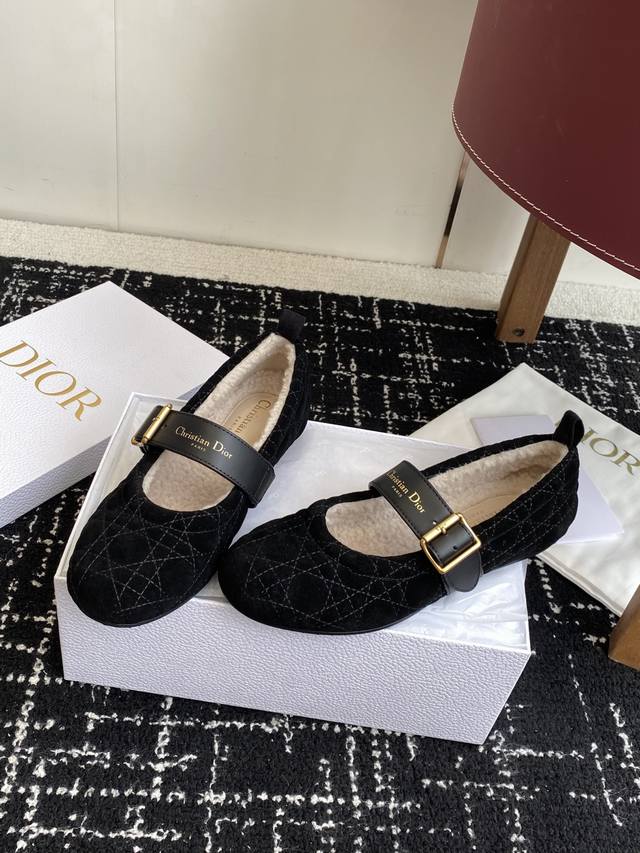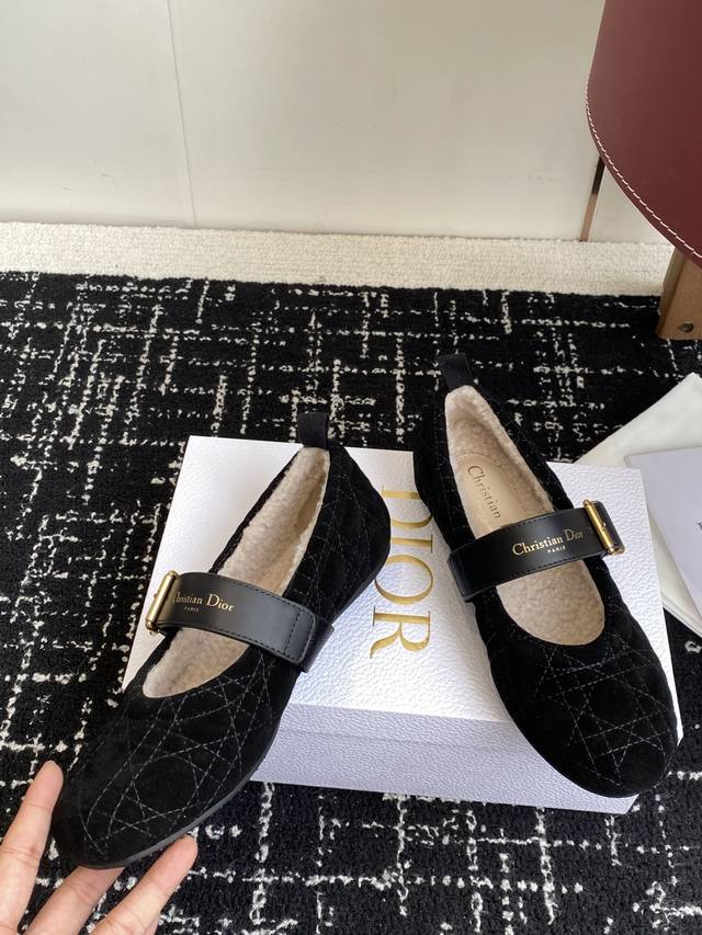 / 代购级 Dior 25Ss 秋冬新品 羊毛玛丽珍 芭蕾舞鞋 新品Dior格纹芭蕾舞 好乖啊~ 芭蕾鞋经典的迪奥藤格纹元素 罗纹蝴蝶结上加了Cd细节的珍珠设计精致