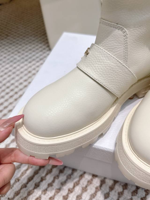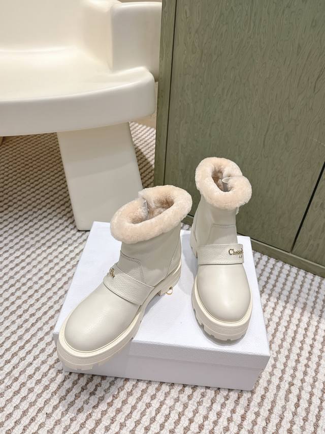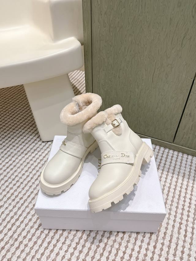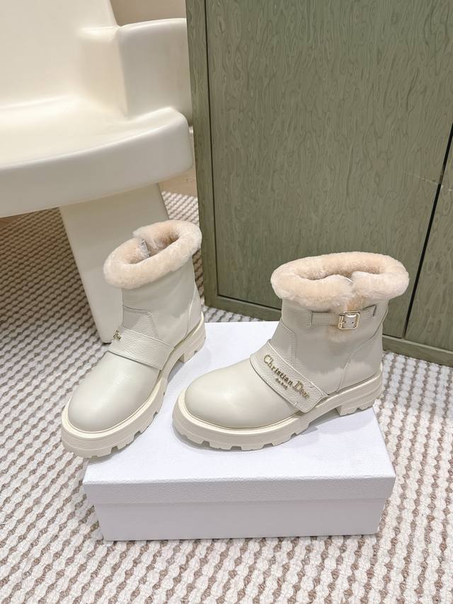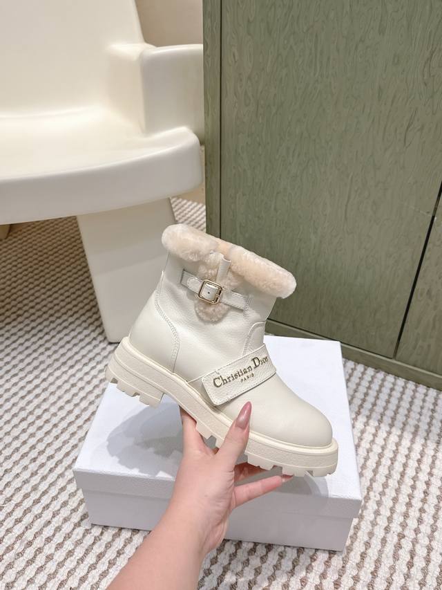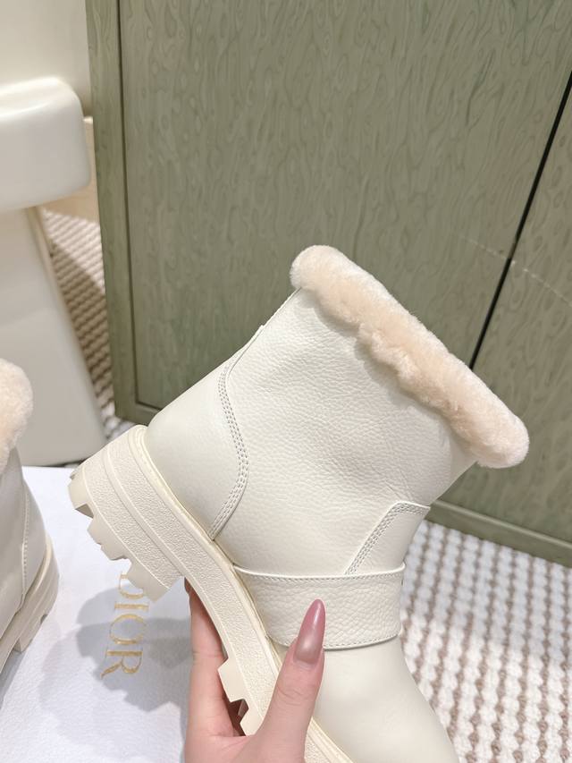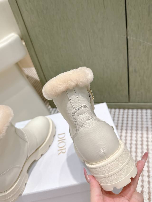 / 代购级 Dior-Mor系列朋克风防寒保暖毛毛女靴 2025秋冬新款明星同款字母Logo五金皮带扣侧拉链机车靴 厚底圆头一脚蹬骑士短靴 材质:鞋面进口全粒面小牛