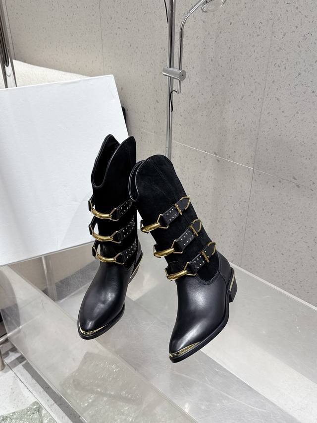 代购级 Chloé克洛伊 寇依 2025Ss切尔西靴中筒靴 请认准高版本 这款靴子在设计上独具匠心 以绑带与皮带元素作为亮点...