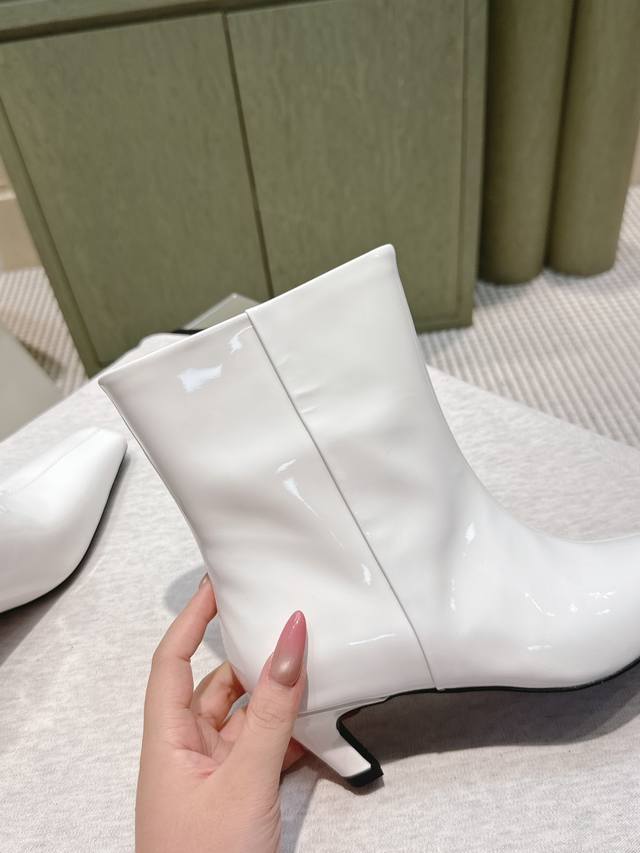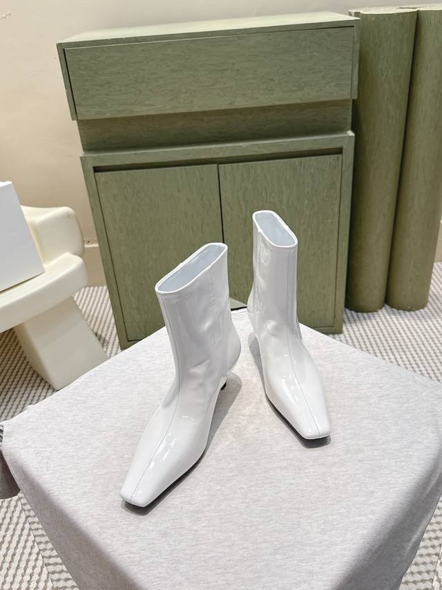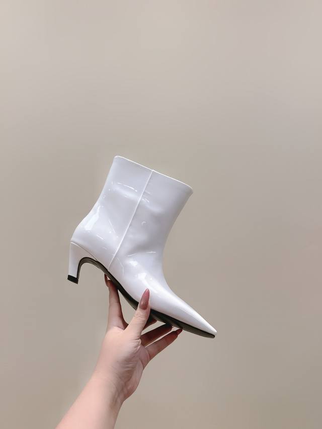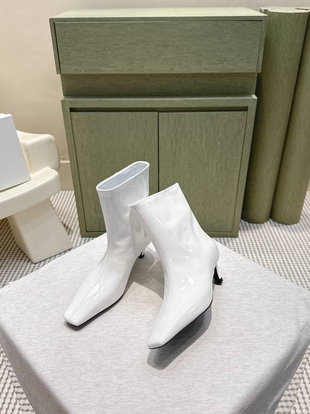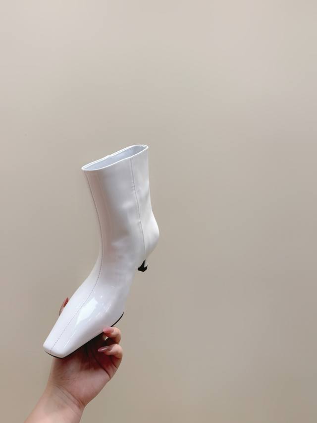 代购级 Khaite2025秋冬新款方头猫跟靴时尚短靴 小方头加小猫跟,很有腔调的 靴口有点斜切设计,新颖不单调! 好看好看,也很好穿搭,爱了爱 鞋面:开边珠牛