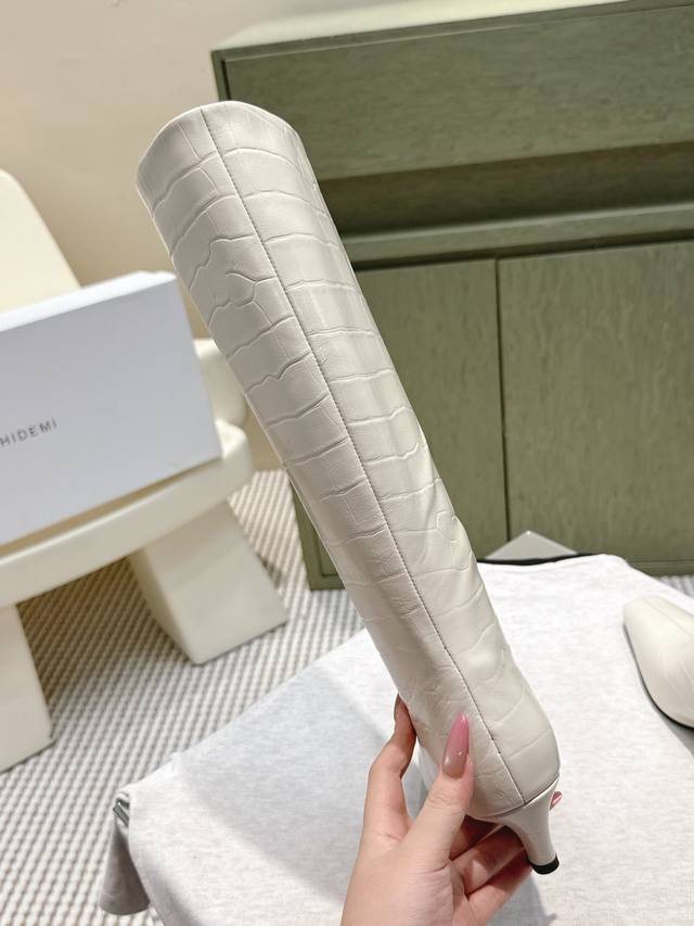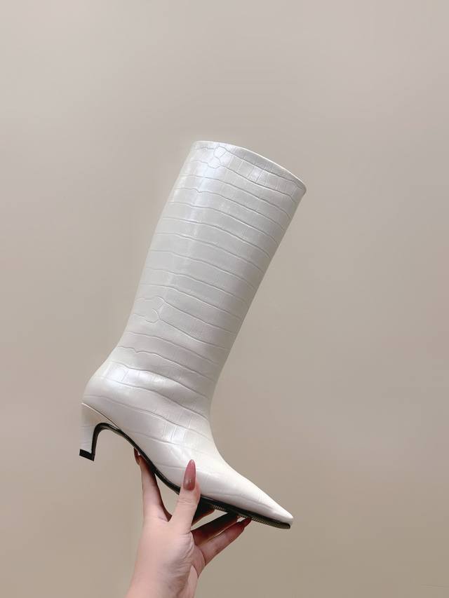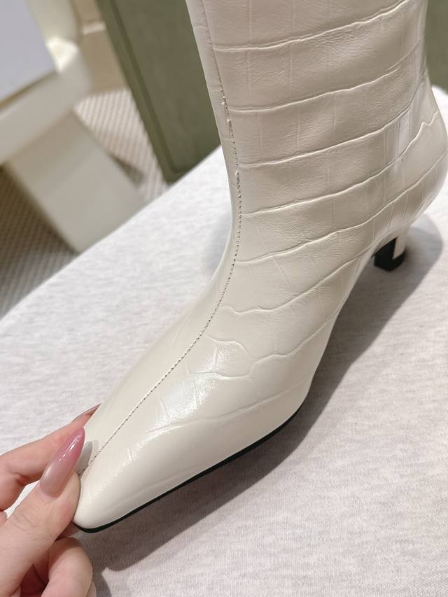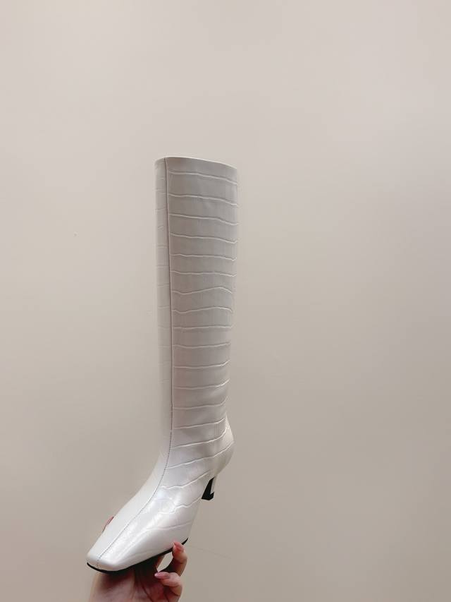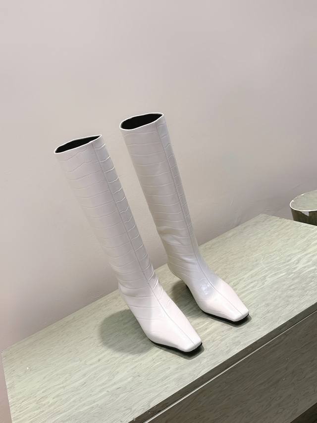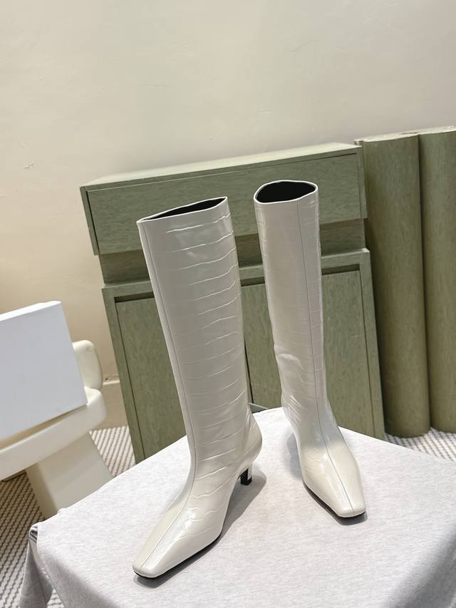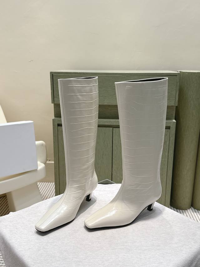 / 代购级 Khaite2025秋冬新款方头猫跟靴时尚高筒靴 小方头加小猫跟,很有腔调的 靴口有点斜切设计,新颖不单调! 好看好看,也很好穿搭,爱了爱 鞋面:原版牛
