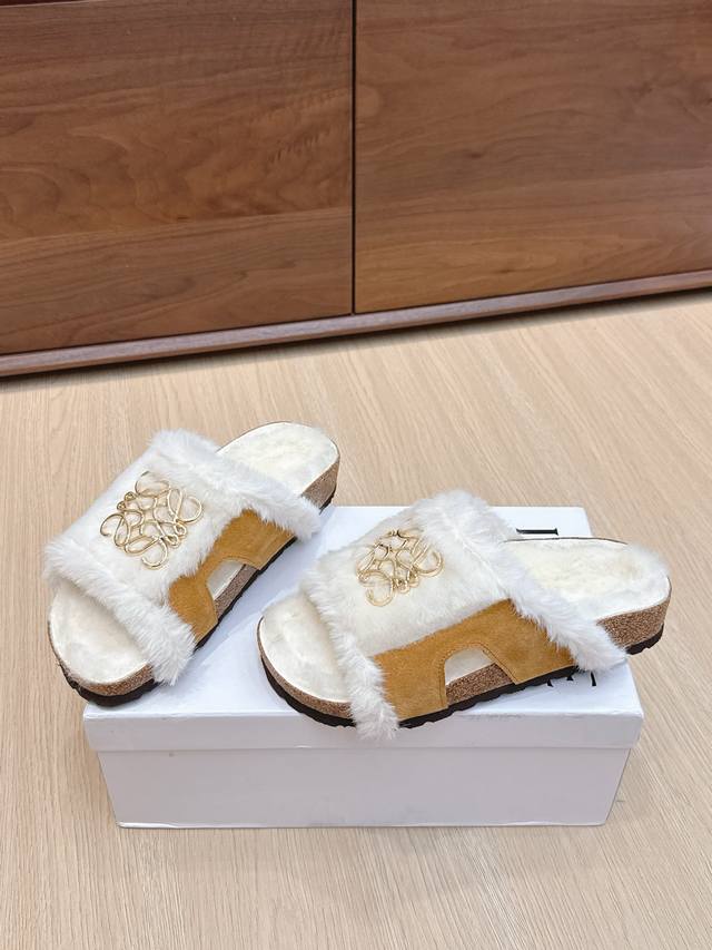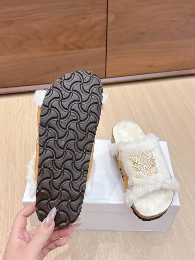 代购级 Loewe X Birkenstock 罗意威X勃肯鞋毛毛 博肯皮革绒面双扣时尚休闲平底鞋 牛皮绒面革质地柔软搭配可调节鞋扣提升穿着舒适度⑤ 人体工学设计分散脚部压力 保护脚踝 软木乳胶鞋床具有一定的收缩性 长时间穿着后能贴合脚型 Eva鞋底回弹性和抗张性力高 具有良好的防震、缓冲性 四季皆宜 柔软的鞋床采用额外的泡沫缓冲层 提供额外的舒适感和全天支撑 码数:35-45