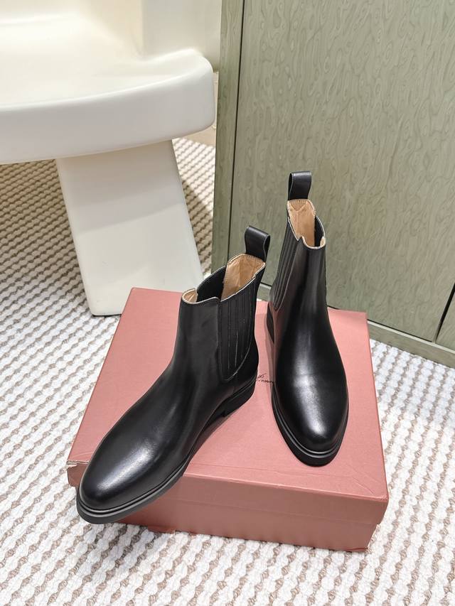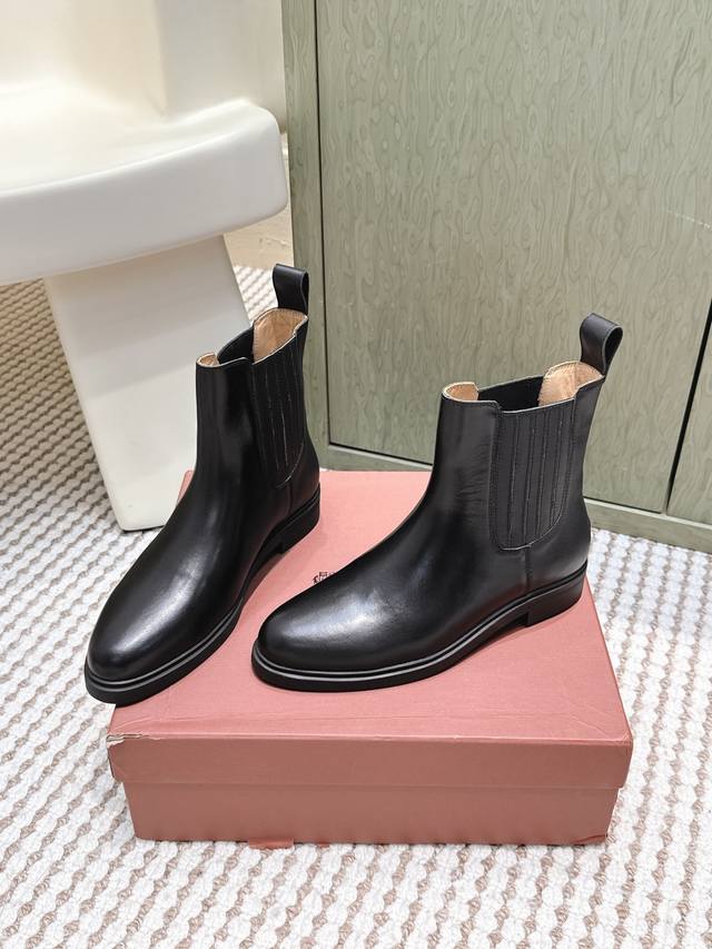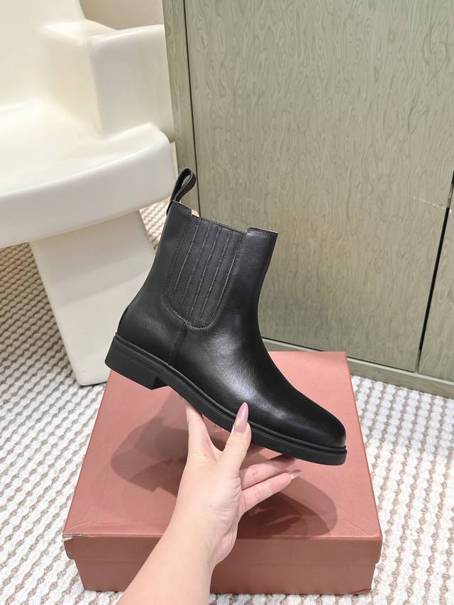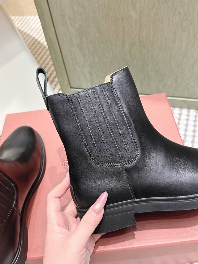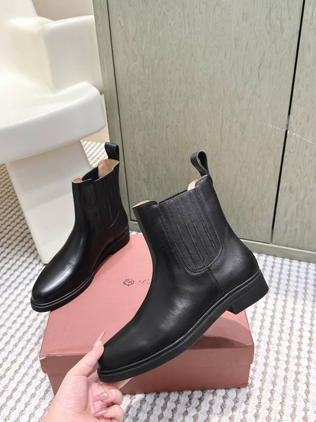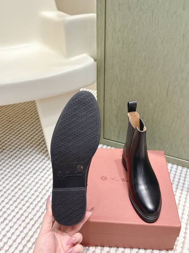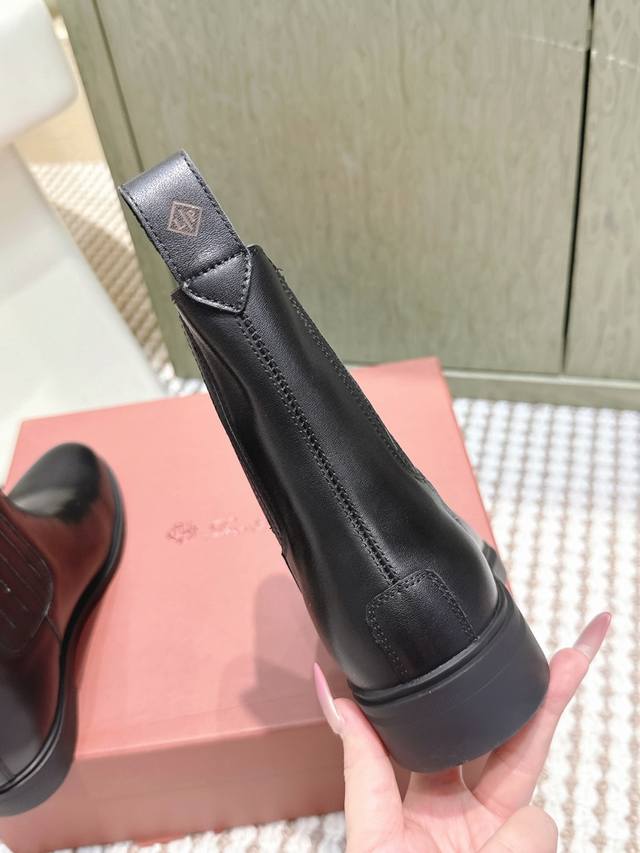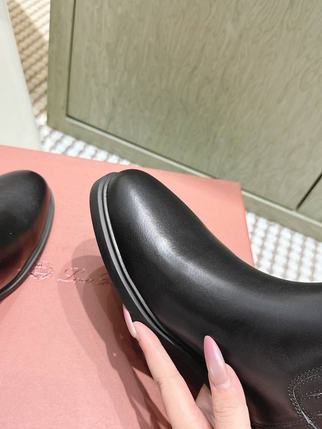代购级 Loro Pian*25S秋冬新款 极简复古一脚蹬平底短靴 非常极简复古的款式,鞋面整体就是哑光牛皮面的简单制作,只有纯粹的牛皮质感,唯有靴筒上多了圆环