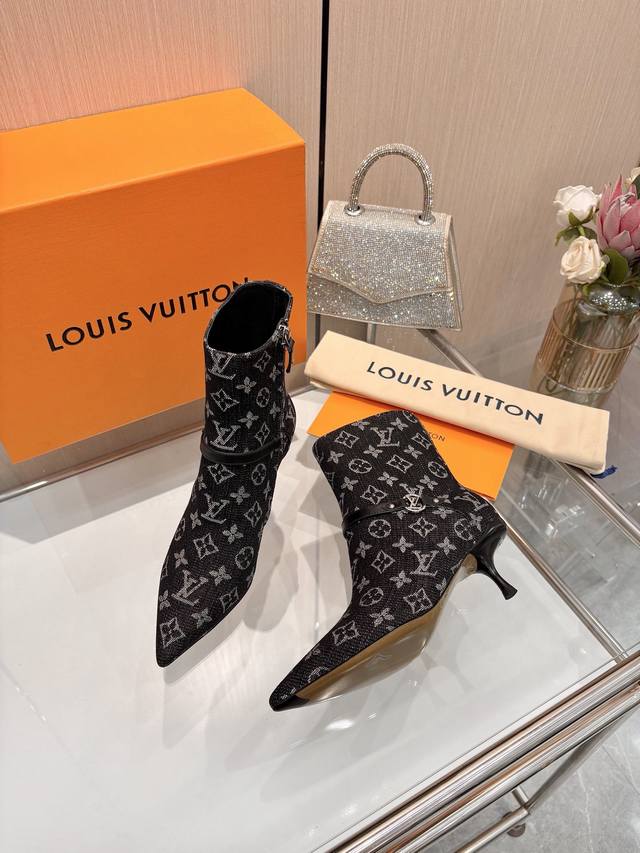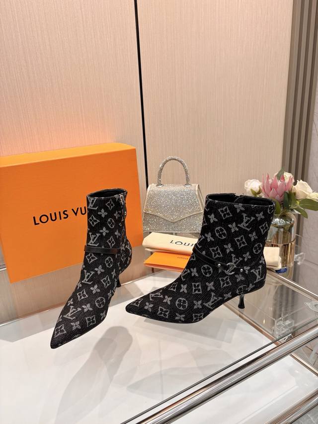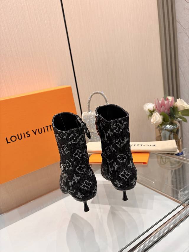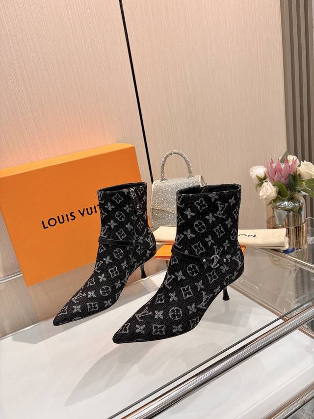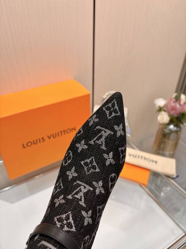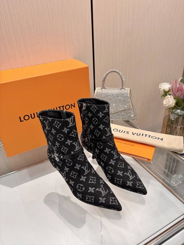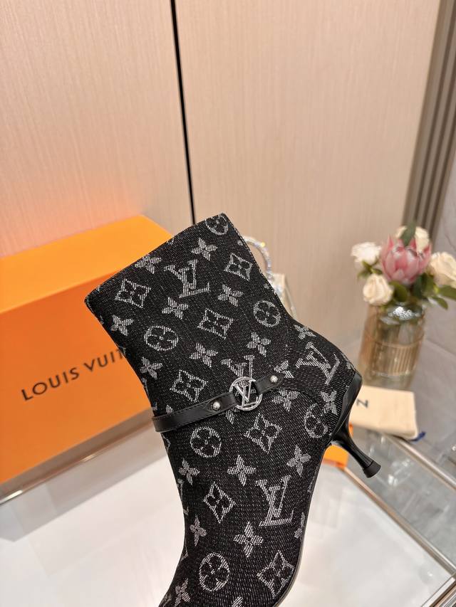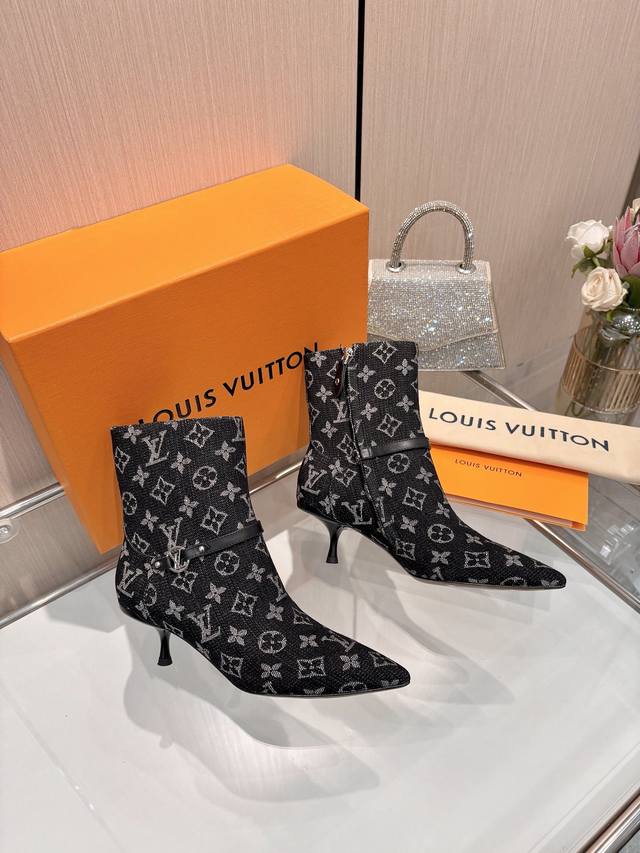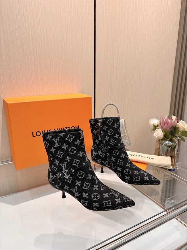 代购级 、Louis Vuitton 2025官秋短靴系列!完美楦型、工厂P批P: 尖头新品、官网同步更新 Lv五金 “Logo”饰以点缀,细节感拉满、效果视觉盛宴难以掩饰Lv的优雅气质刚刚好、上脚舒适好穿、女人味十足。 新原版倒模楦型,极致1:1形体,做工精致、进口高端面料呈现出精致质感! 面料:小牛皮 老花 牛仔布 内里优质柔软羊皮里、 垫脚:进口山羊皮、 意大利真皮大底 5.5烤漆跟 码数:34-41 34.40、41、定制不退不换