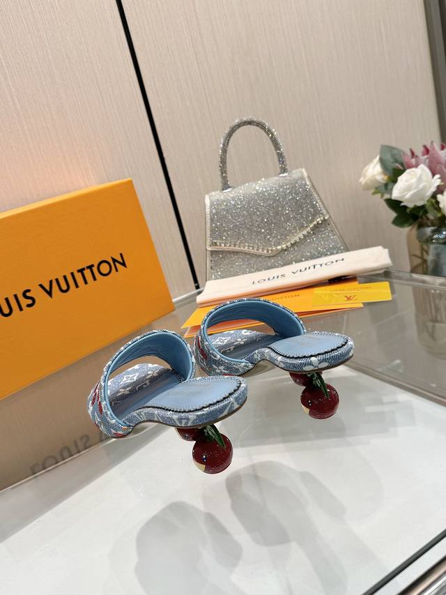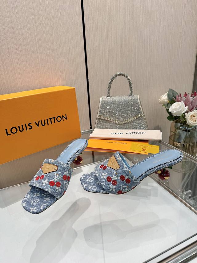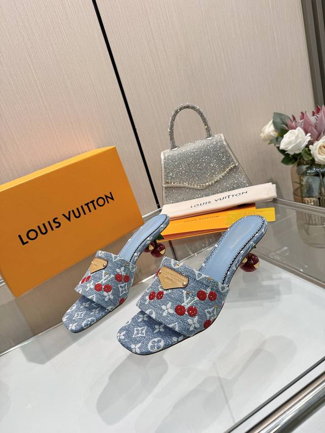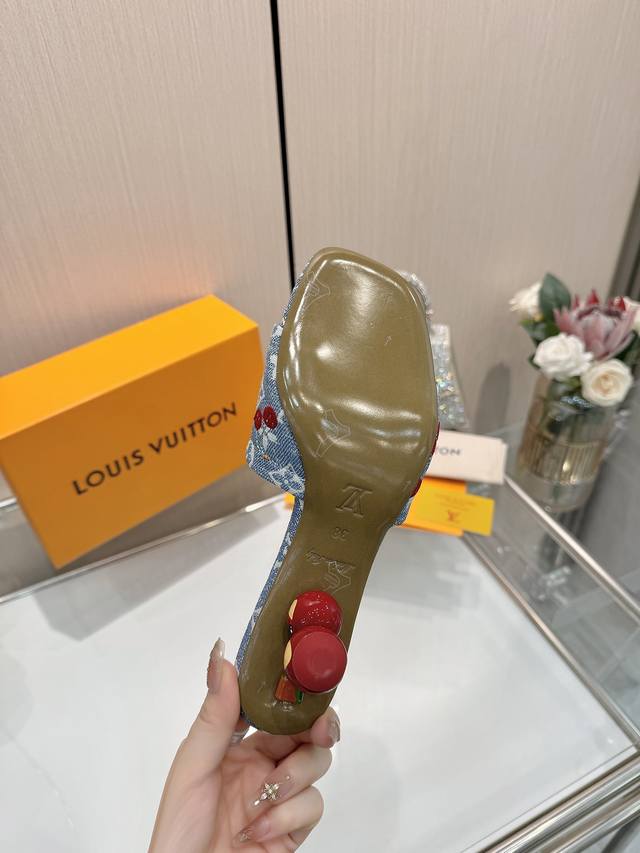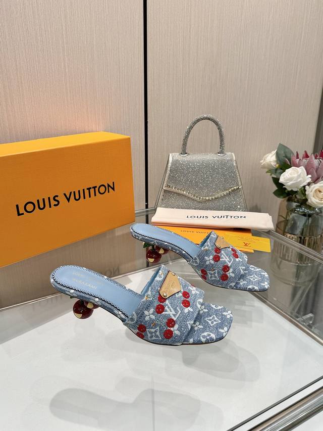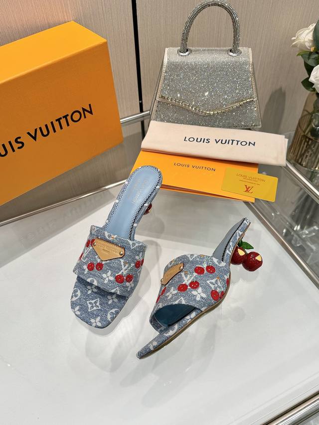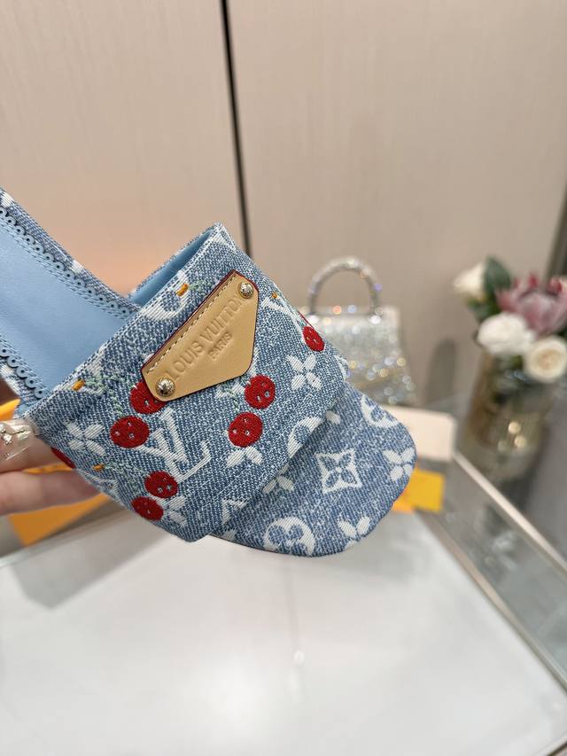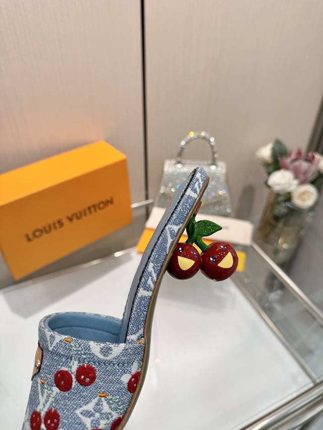 代购级 、Louis Vuitton 2025款官网系列!工厂P批P: 、完美楦型、新元素樱桃电绣装饰更显优雅气质、上脚舒适好看、女人味十足、时尚百搭、新原版倒模楦型,极致1:1形体,做工精致、进口高端面料呈现出精致质感! 面料:Lv牛仔布 花皮、内里优质柔软羊皮里、 垫脚:进口山羊皮、 意大利真皮大底 5.5彩绘樱桃跟 码数:34-41 34.41定制不退不换