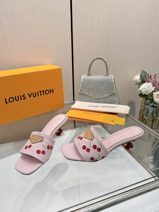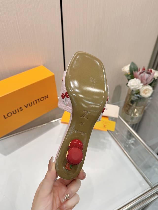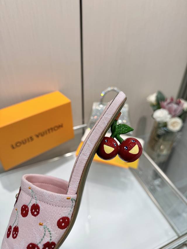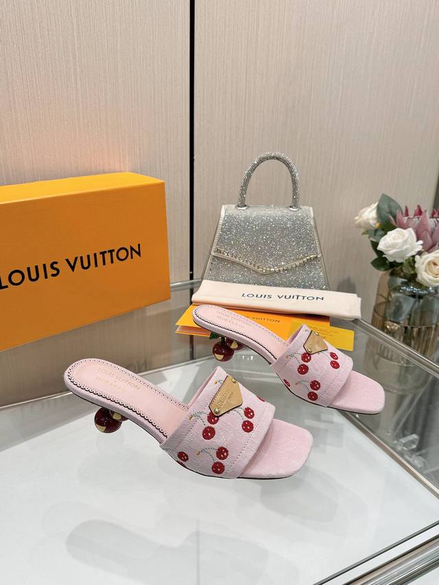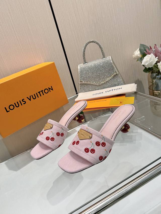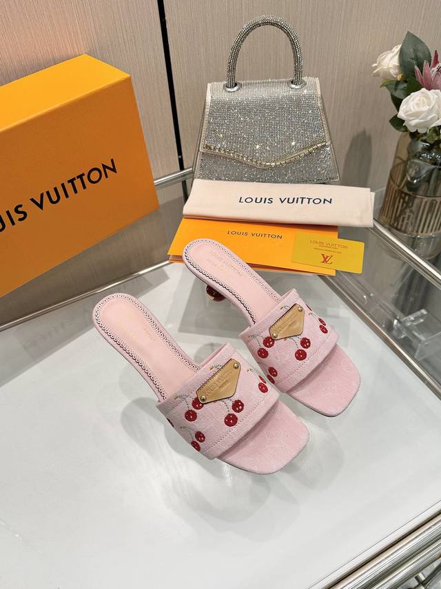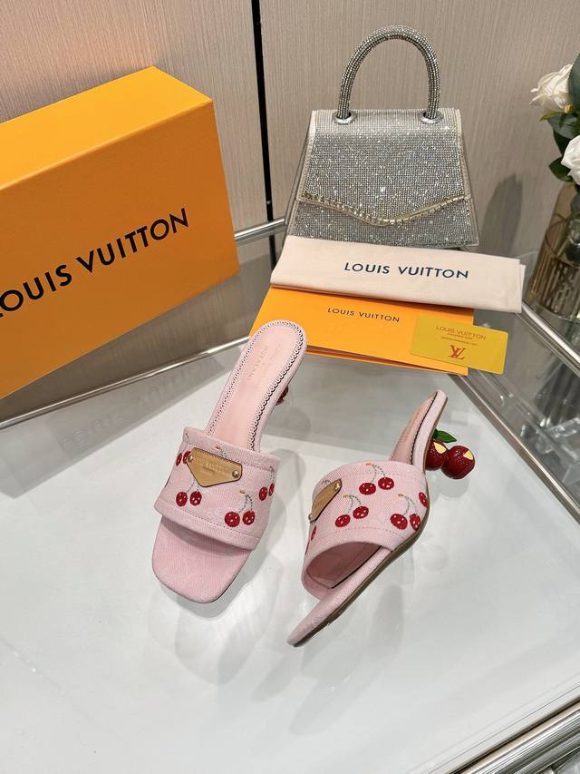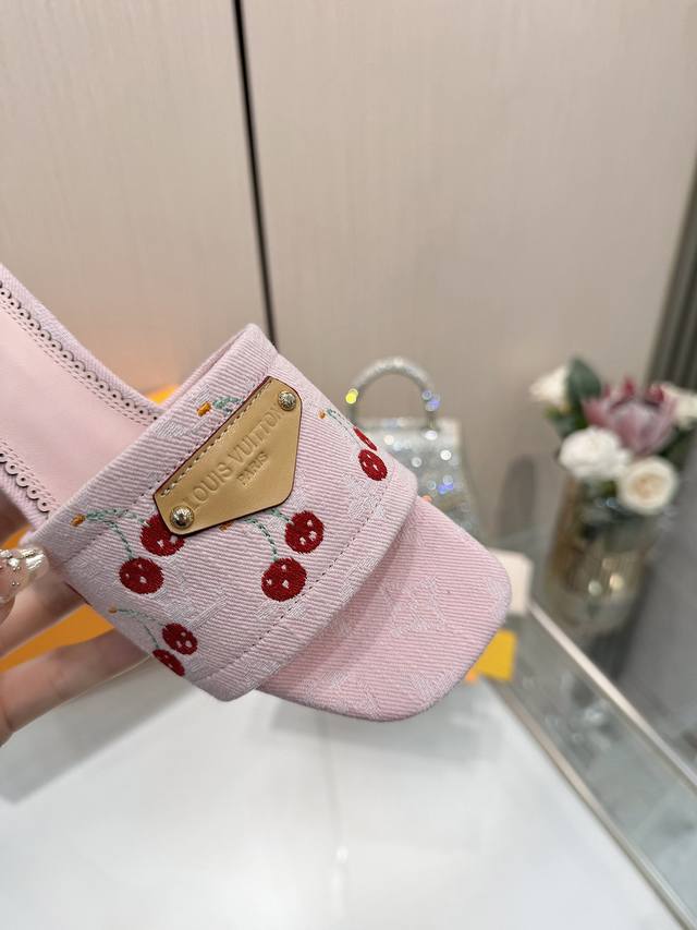 代购级 、Louis Vuitton 2025款官网系列!工厂P批P: 、完美楦型、新元素樱桃电绣装饰更显优雅气质、上脚舒适好看、女人味十足、时尚百搭、新原版倒模楦型,极致1:1形体,做工精致、进口高端面料呈现出精致质感! 面料:Lv牛仔布 花皮、内里优质柔软羊皮里、 垫脚:进口山羊皮、 意大利真皮大底 5.5彩绘樱桃跟 码数:34-41 34.41定制不退不换