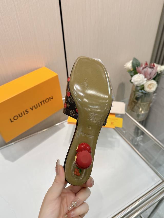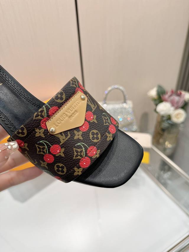 代购级 、Louis Vuitton 2025款官网系列!工厂P批P: 、完美楦型、新元素樱桃电绣装饰更显优雅气质、上脚舒适好看、女人味十足、时尚百搭、新原版倒模楦型,极致1:1形体,做工精致、进口高端面料呈现出精致质感! 面料:Lv牛仔布 花皮、内里优质柔软羊皮里、 垫脚:进口山羊皮、 意大利真皮大底 5.5彩绘樱桃跟 码数:34-41 34.41定制不退不换