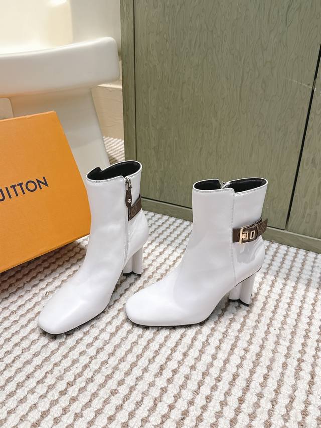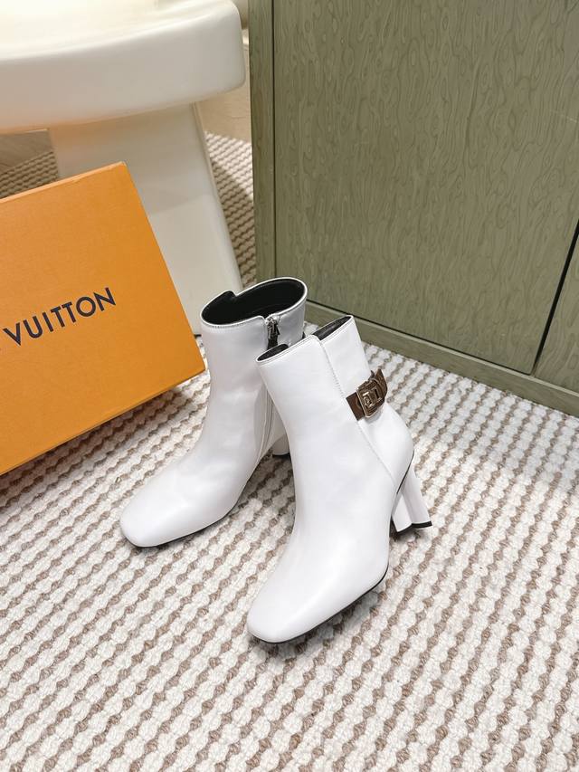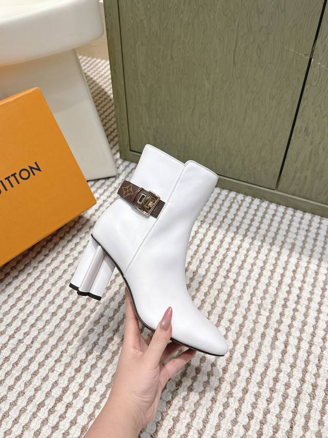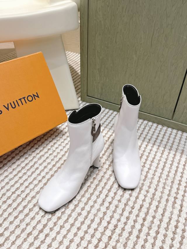 / 代购级 Louis Vuitton 25Ss 秋冬新款简约圆头小牛皮高跟短靴 原版套楦,完美的线条,简约大气上脚显气质粗跟舒适百搭 还能拉长双腿显高显瘦显腿长,
