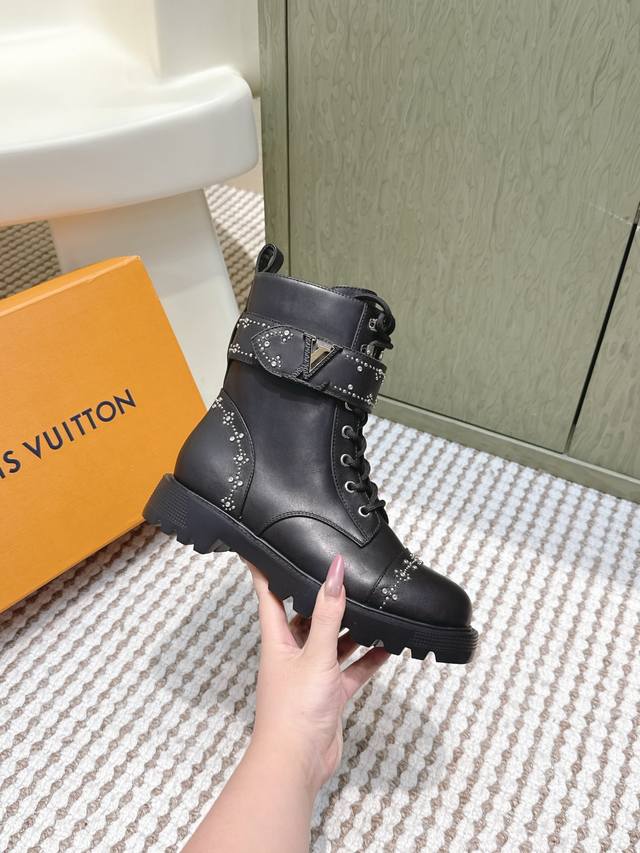 代购级 Louis Vuitton 25Ss 秋冬新款Time Out + Sneakerina結合版厚底靴 軍靴超級好看!如果不能接受Sneakerina 薄底鞋 Time Out的厚底+增高 Sneakrina的外型設計 一次擁有兩種設計,太棒了吧 原版套楦,完美的线条,简约大气上脚显气质粗跟舒适百搭 面料:意大利进口小牛皮 内里:进口羊皮 鞋底:原版开模大底 Size:35-39 40 41 订做不退换