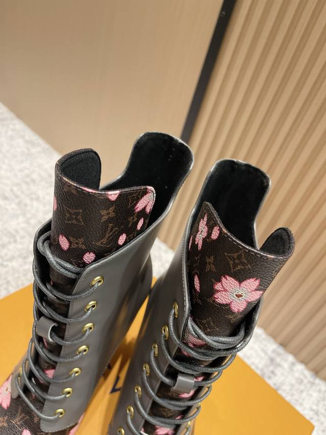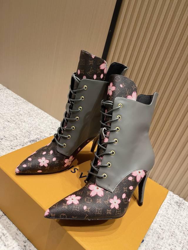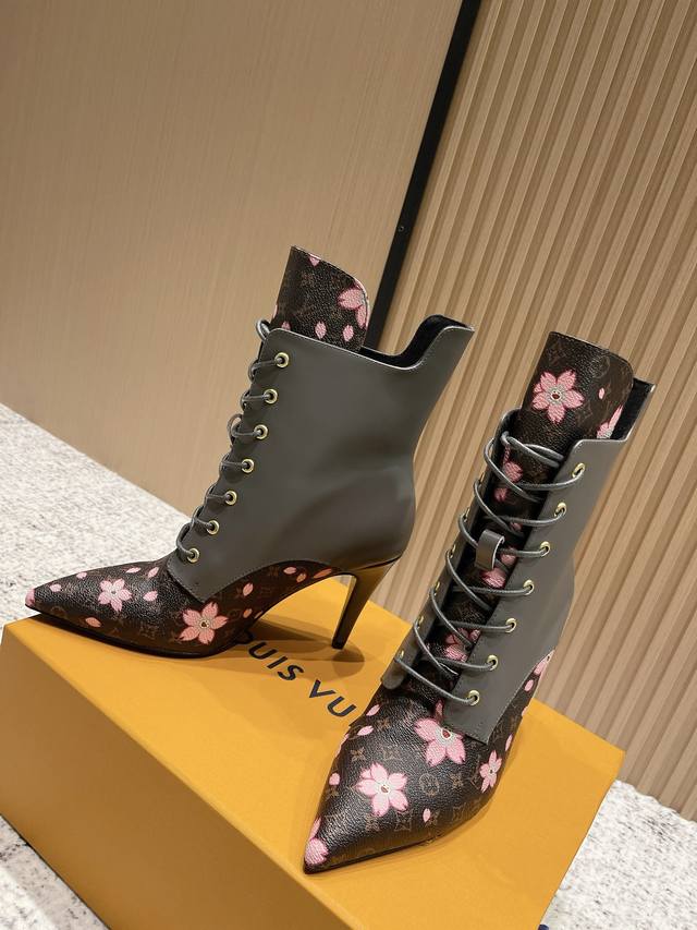 / 代购级: Lv驴牌 25Ss 新款秋冬高跟马丁靴短靴 楦型百搭瘦脚Yyds.造型立体饱满,气质满满 上脚舒适 非常复古风、气场十足,加原版老花设计风格非常经典