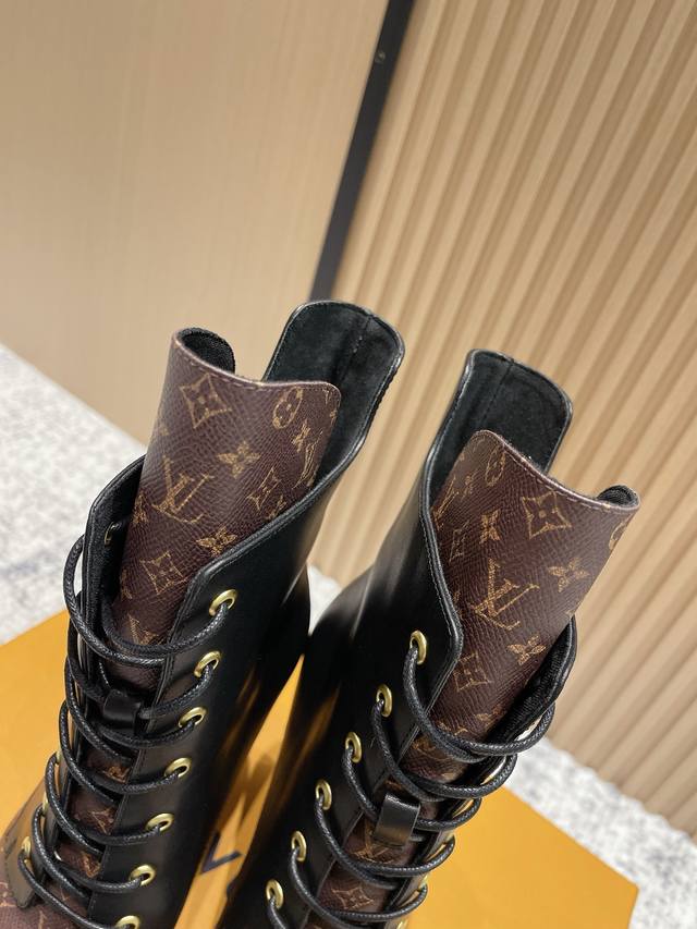 代购级: Lv驴牌 25Ss 新款秋冬高跟马丁靴短靴 楦型百搭瘦脚Yyds.造型立体饱满,气质满满 上脚舒适 非常复古风、气场十足,加原版老花设计风格非常经典