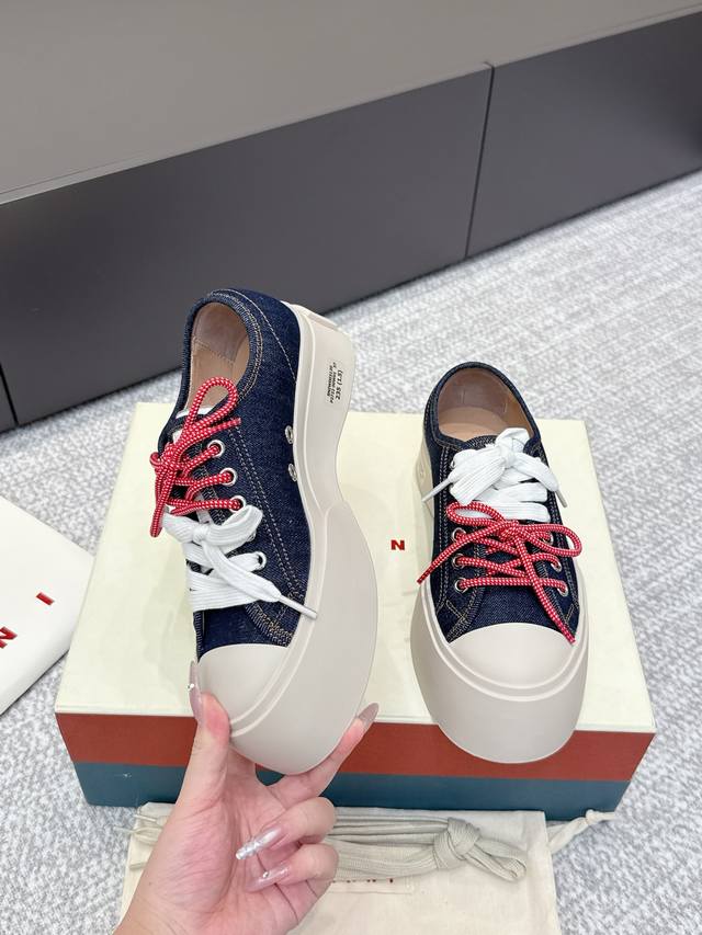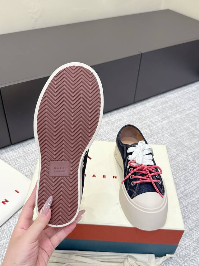 代购级 Marni 玛尼最新款大头女鞋,非常显高档又舒适,白色黑色都好打理,脚感非常好,完全不打脚,主要是很显脚细哦!还可以增高,鞋头大大的还有一种卖萌的感觉,让人忍不住的想摸,非常百搭,没有它搭配不了的,原版特定牛皮材质,内里羊皮,鞋垫羊皮,独家开模大底 鞋头圆圆的 鞋底是增高的,搭配裙子 裤子都可以 可甜可酷 显个高 显腿瘦长。在增高的基础上,也不失去时尚感脚感很舒适,属于那种越穿越柔软的鞋。 总觉得厚底鞋会显得特别笨重,没想到上脚超级棒很秀气,而且很轻 最重要的是皮面超级好打理 湿巾纸擦擦就干净了