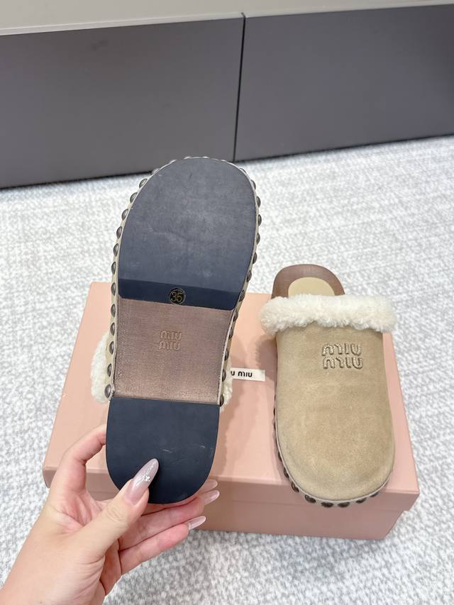 代购级 Miu Miu 25Ss秋冬新款 羊毛拖鞋 鞋Miumiu秀场适当独一无二的擦色工艺工艺来自Miu Miu系列的细节特写 新季的潮流要素一此刻挚爱的概念,多元对撞,传达现代风格~怎么穿都好看今夏时髦精最爱 看起来不怎么舒服 上脚超级舒服 面料:进口羊毛磨砂 内里:进口羊毛 颗粒毛 大底:原版实物鞋底 非普通鞋底 Size:35-41 40 41订做不退换