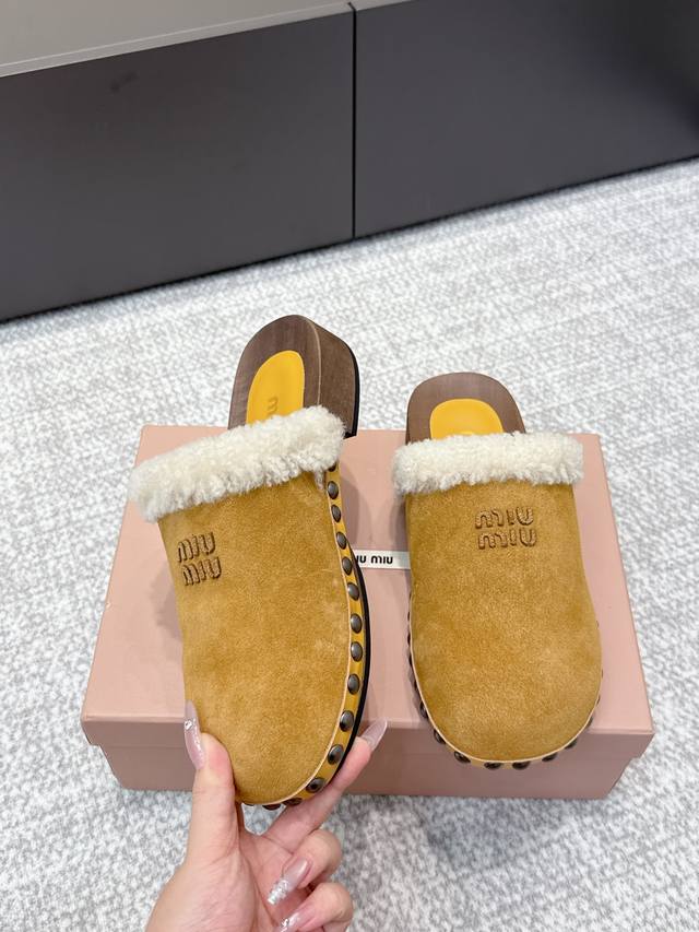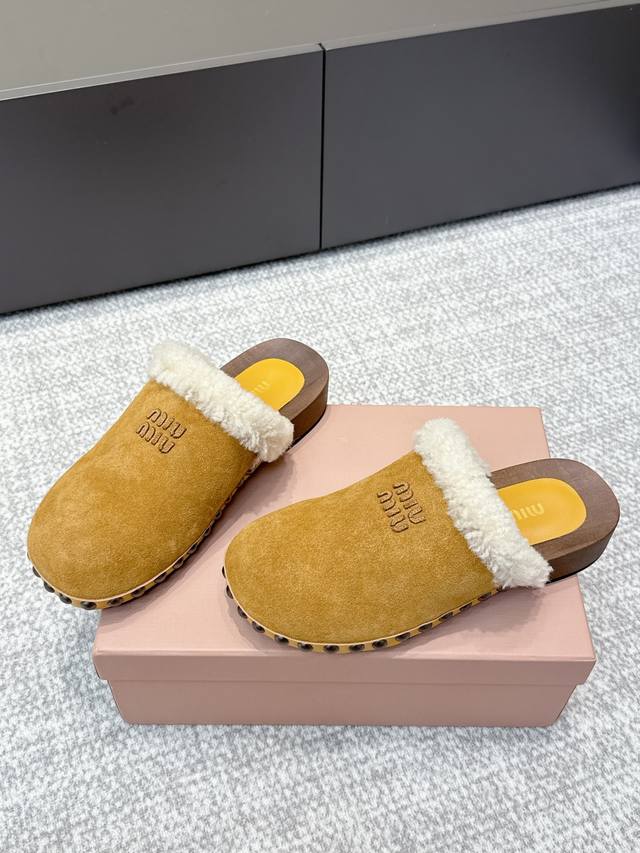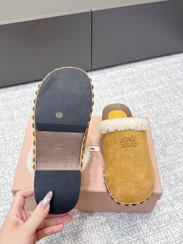 代购级 Miu Miu 25Ss秋冬新款 羊毛拖鞋 鞋Miumiu秀场适当独一无二的擦色工艺工艺来自Miu Miu系列的细节特写 新季的潮流要素一此刻挚爱的概念,多元对撞,传达现代风格~怎么穿都好看今夏时髦精最爱 看起来不怎么舒服 上脚超级舒服 面料:进口羊毛磨砂 内里:进口羊毛 颗粒毛 大底:原版实物鞋底 非普通鞋底 Size:35-41 40 41订做不退换