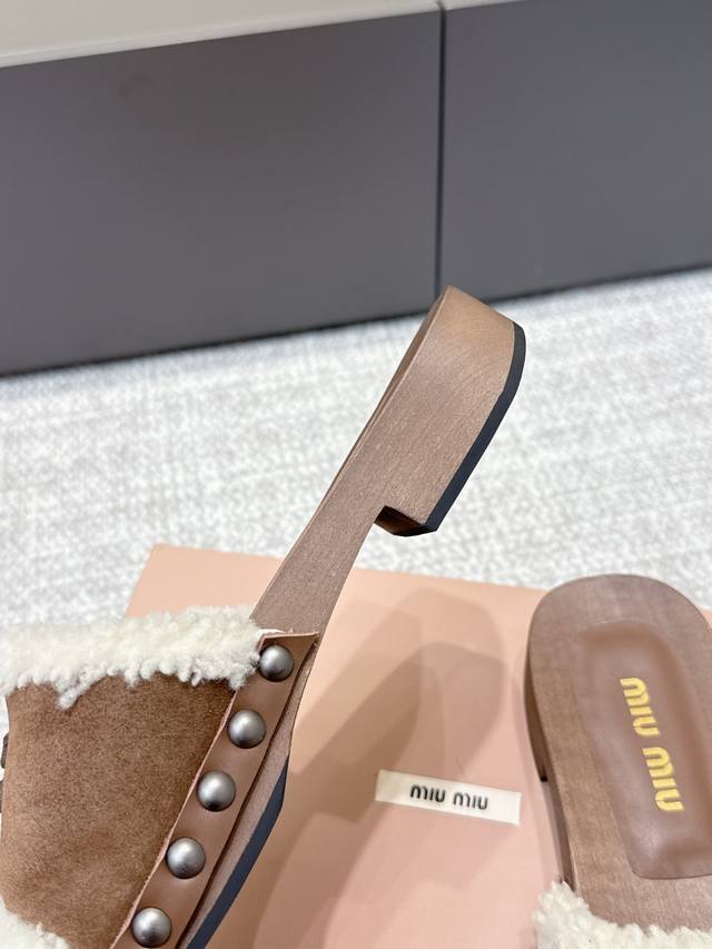 代购级 Miu Miu 25Ss秋冬新款 羊毛拖鞋 鞋Miumiu秀场适当独一无二的擦色工艺工艺来自Miu Miu系列的细节特写 新季的潮流要素一此刻挚爱的概念