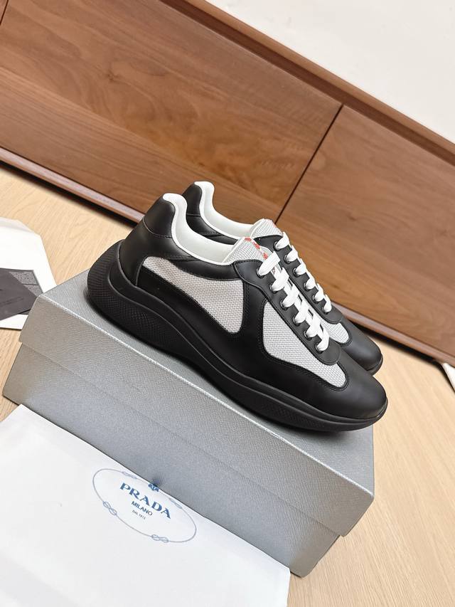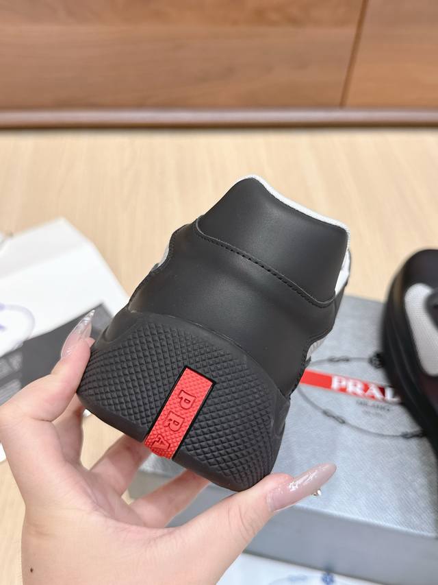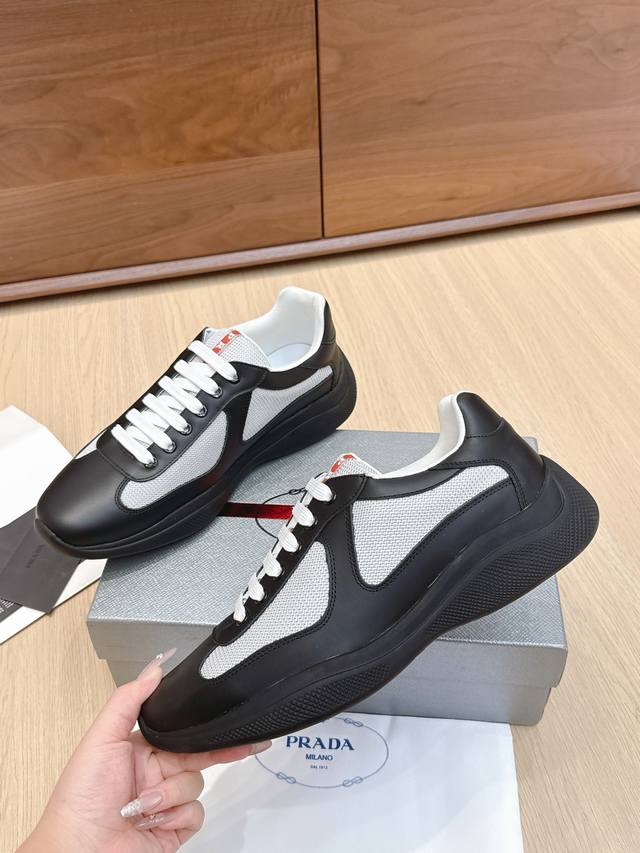/ 代购级 Prada普拉达America’S Cup系列 漆皮 网面 休闲 运动鞋 原版购入开发 做货 这款漆面皮革运动鞋内嵌Bike织物,灵感源自经典美学理念。